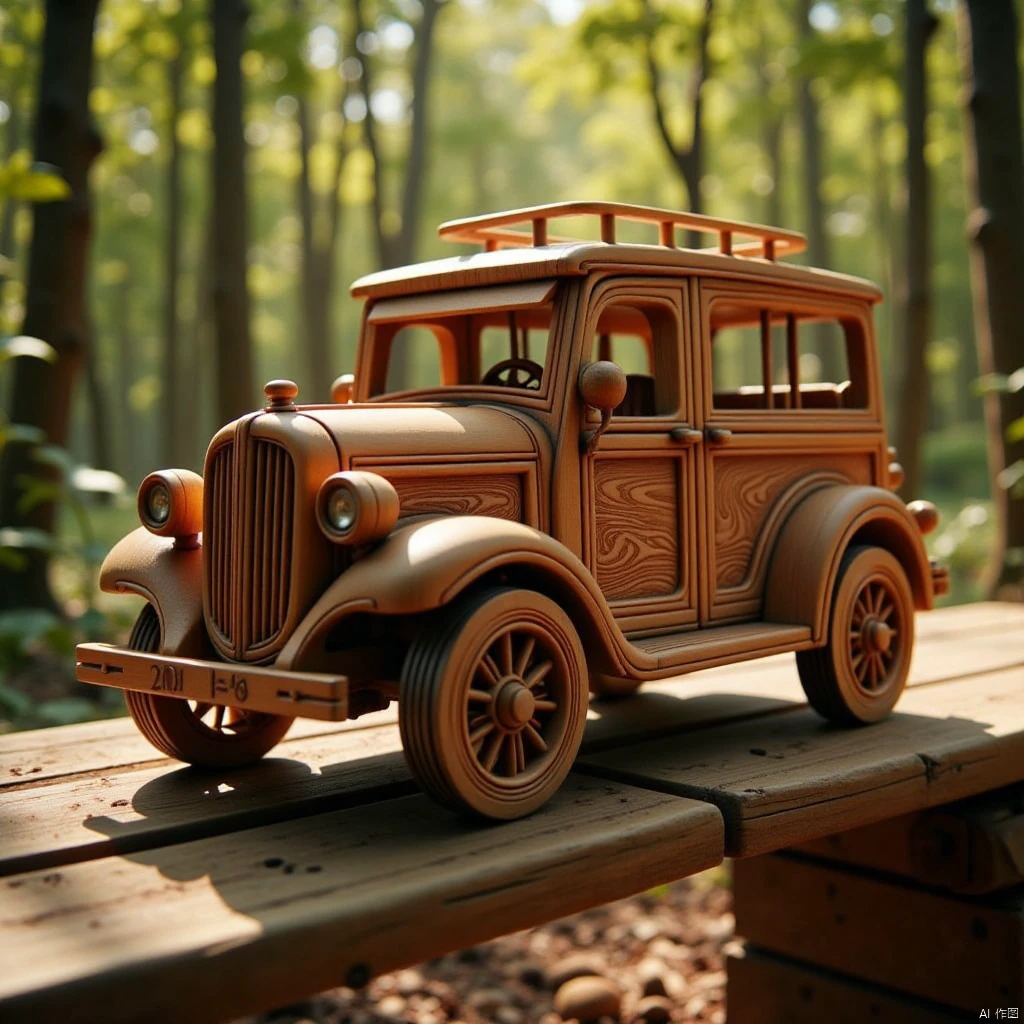 -Recommendation: woodiness, a wooden toy train is positioned on a white surface. The train is made up of light-colored wood planks, arranged in a way that The train is made up of light-colored wood planks, arranged in a way that creates a sense of depth and dimension. The toy train has a wooden house-like structure on the right side of the image. The house-shaped structure is a light brown color