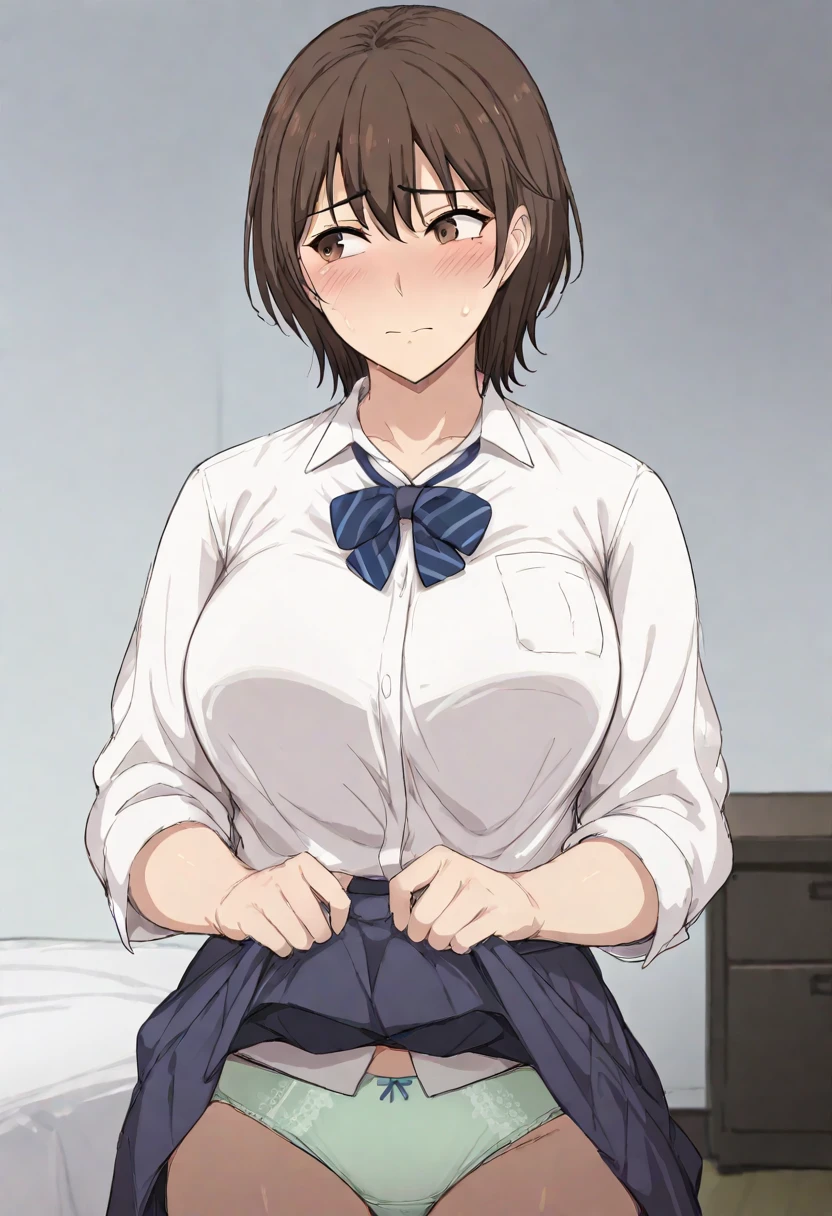 appearance:1girl,segawa_natsuki,brown hair,short hair,large breasts,brown eyes,