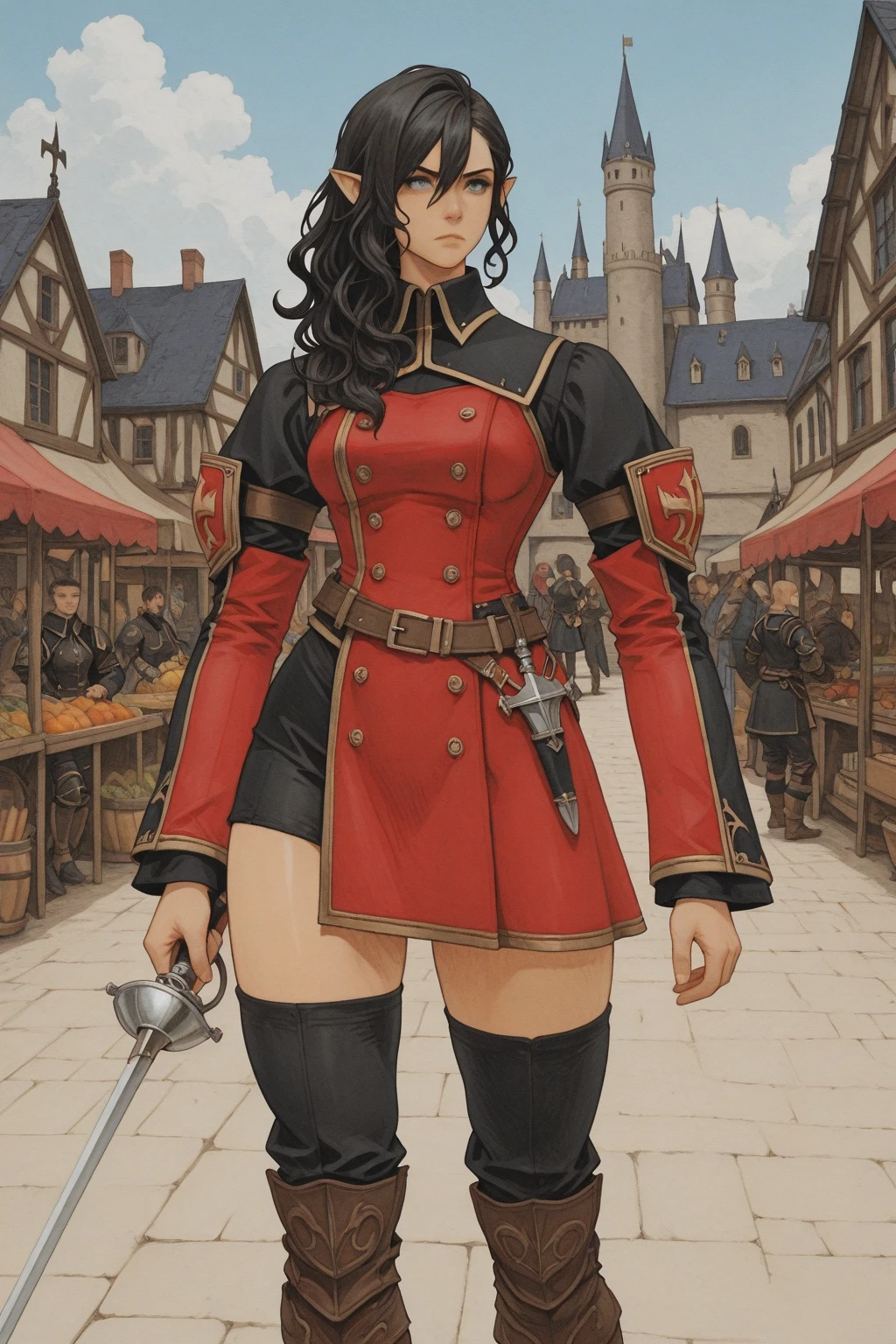 kingdom, red clothes, black clothes, gold trim, Bastok