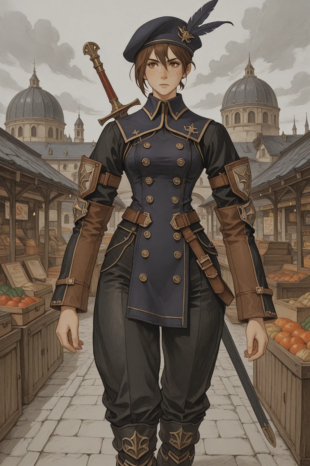 republic, dark blue clothes, black clothes, gold trim, Windurst