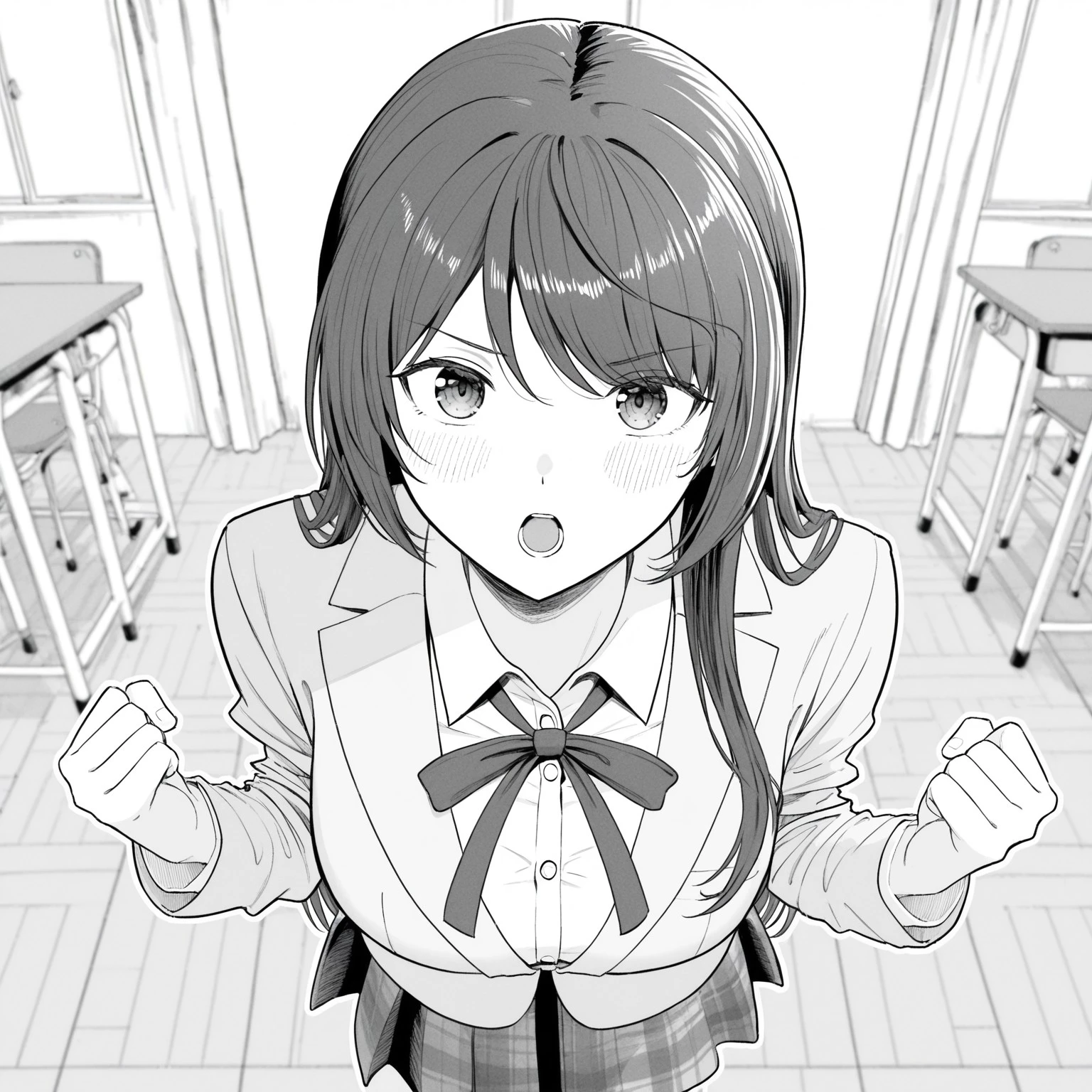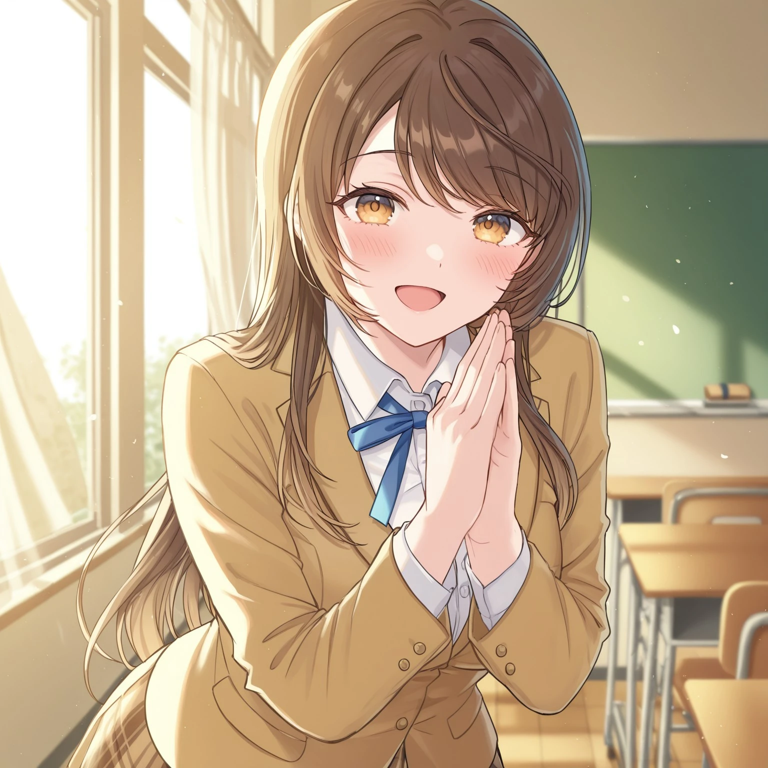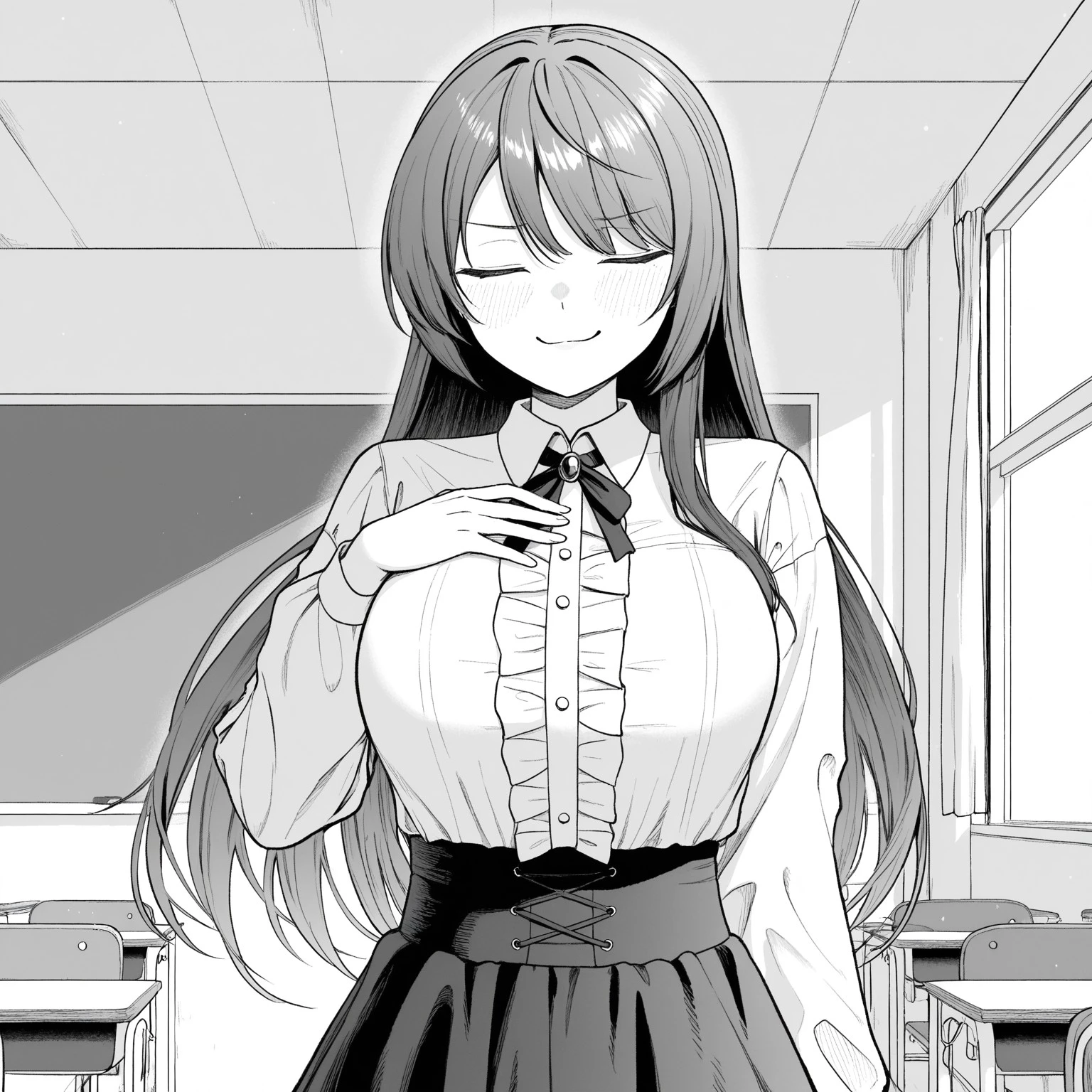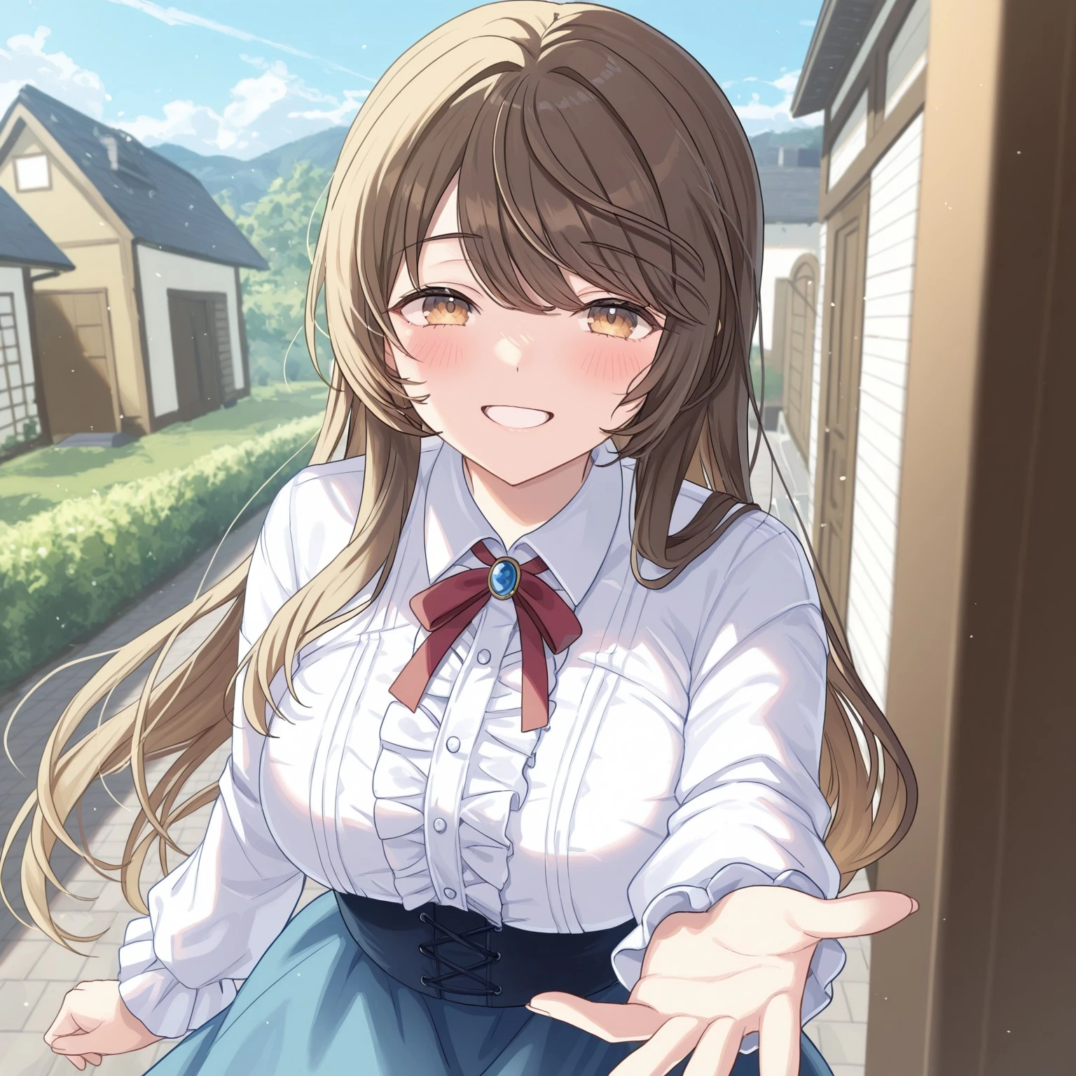 color: haruill, 1girl, breasts, brown hair, brown eyes, long hair,