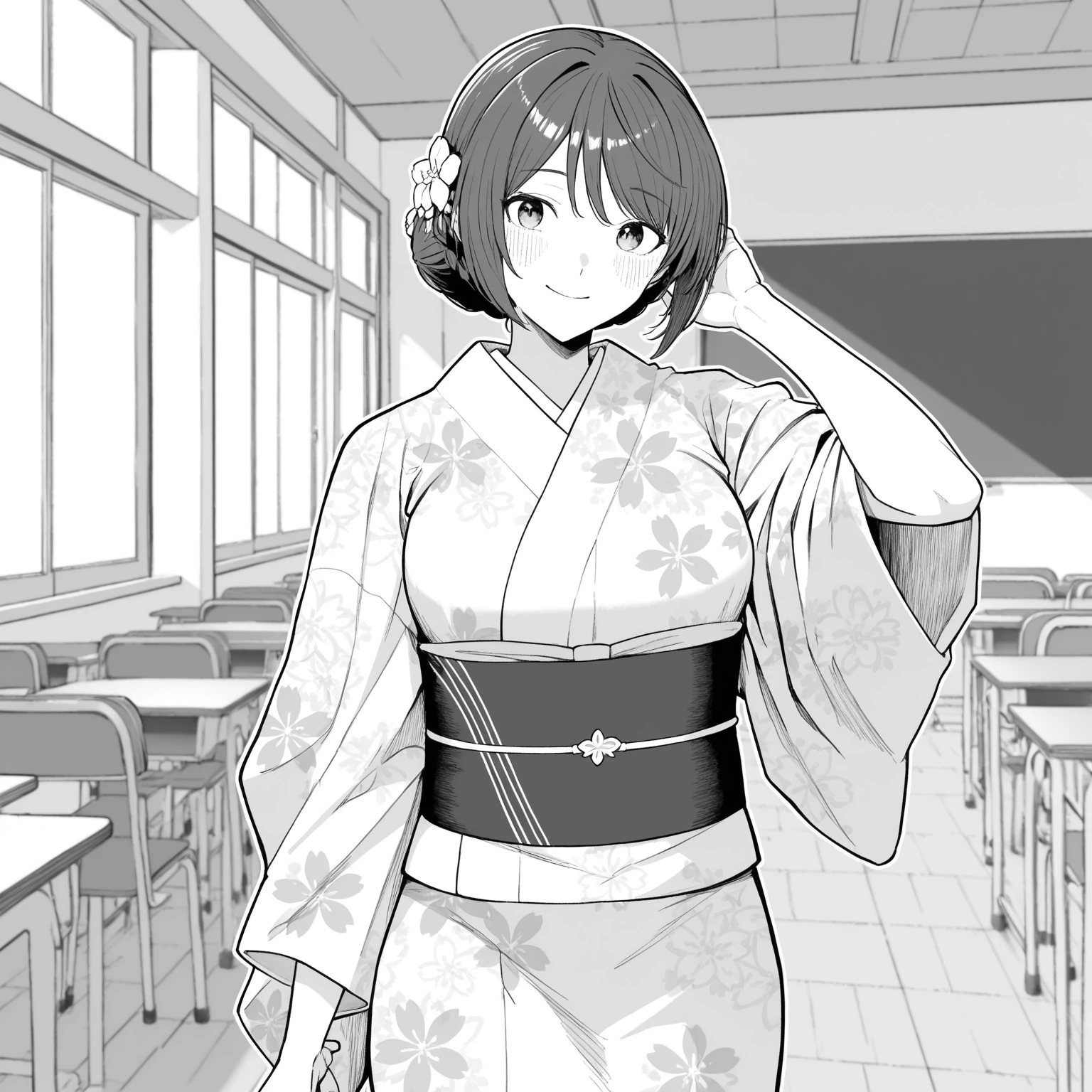 outfit2: harukim, harukim, floral print, japanese clothes, hair bun, hair ornament, hair flower, obi, sandals, sash, kimono