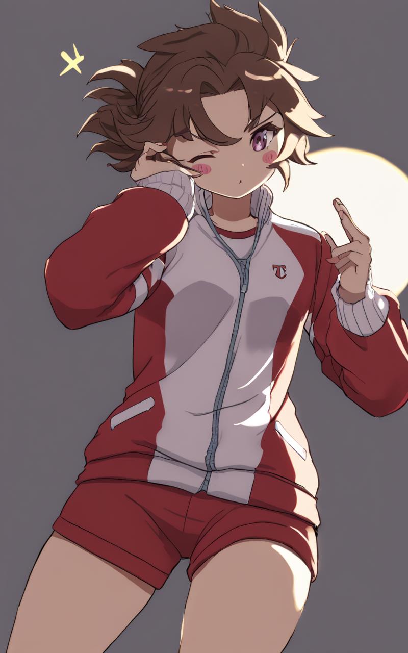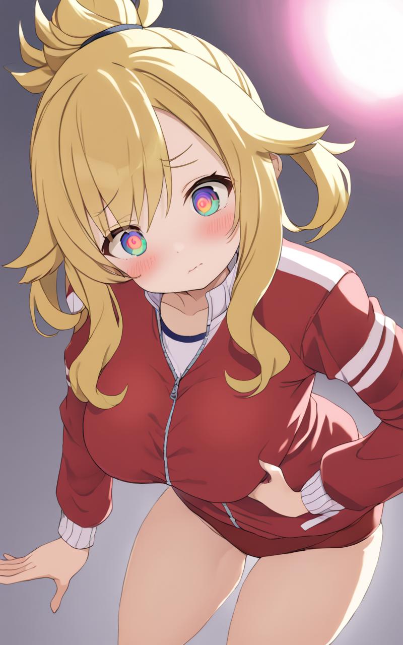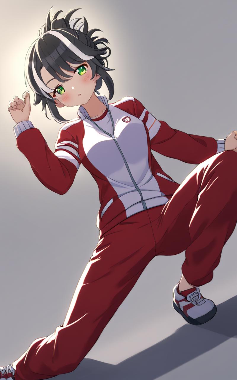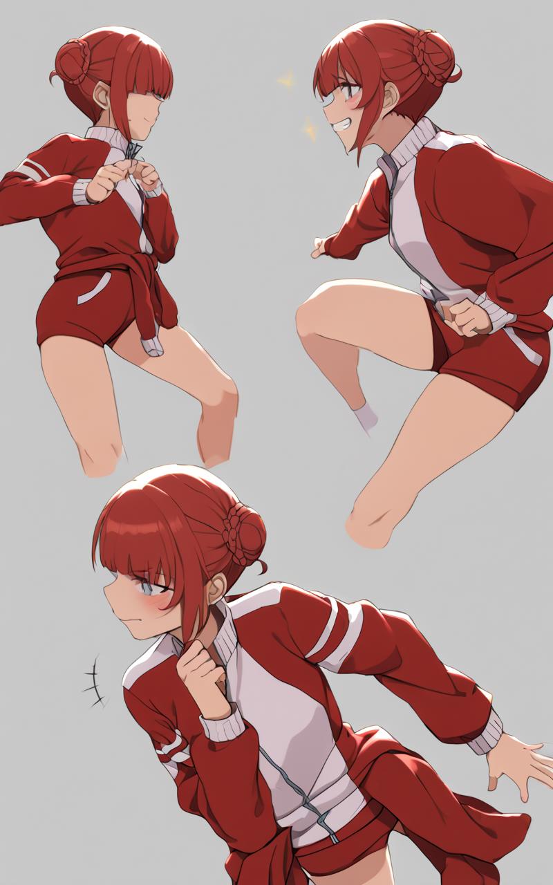 <lora:_sdxl-um-tracenjersey:0.8> red track jacket, { ||| unzipped | around waist track jacket | ?????????? | open clothes | unbuttoned }, { tracenJerseyPants, { red long pants | red short pants } | tracenJerseyBuruma, red buruma, {|||| wedging | panties sticking out } }, 1girl, { cute petite | petite | child | childish | petite child innocent ankle-biter | young | teen }. { flat chest | small beasdt | medium breast | big breast }, skindentation, +++