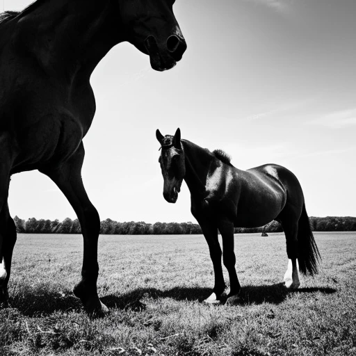 Example prompt: "black and white equestrian photography, ilford hp5 plus film, horse resting on ground, surrounded by standing horses, dramatic natural light, deep shadows, fine grain texture, high contrast monochrome, contemplative mood, powerful composition, vintage film aesthetic, atmospheric depth"