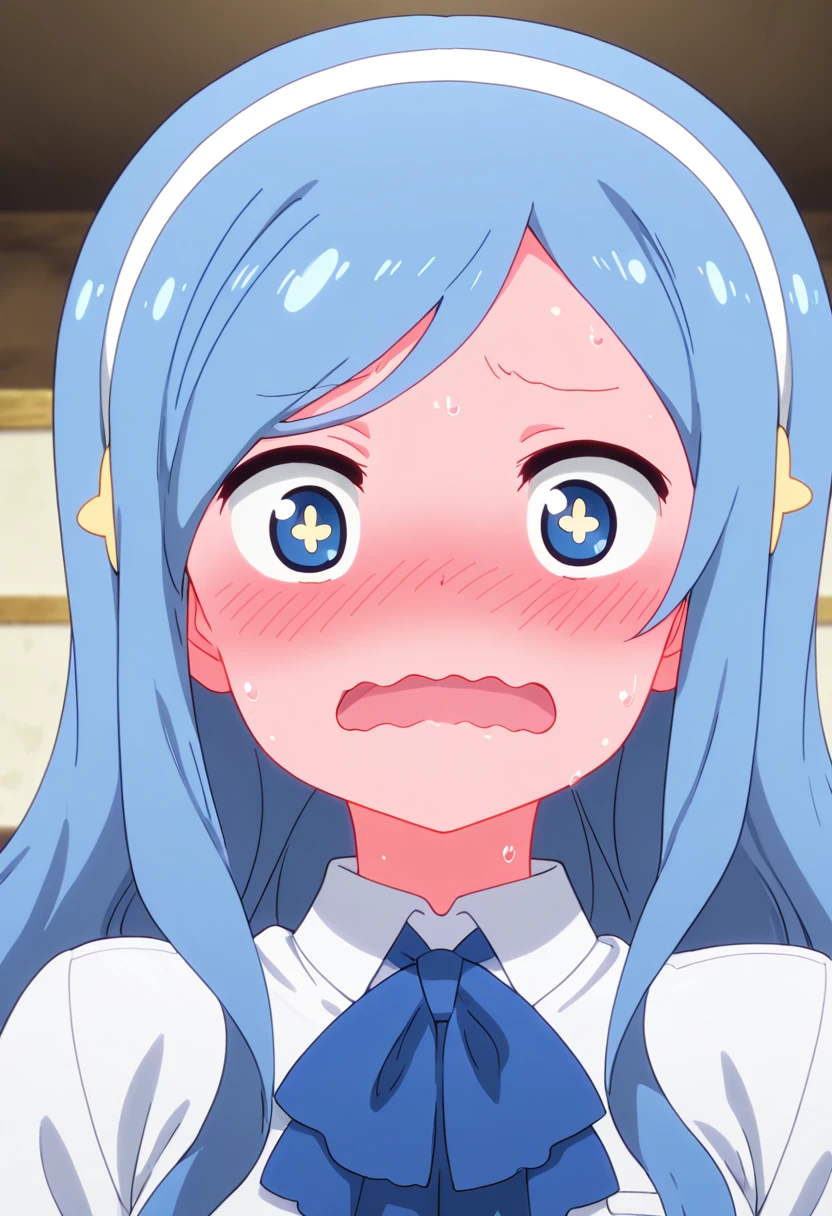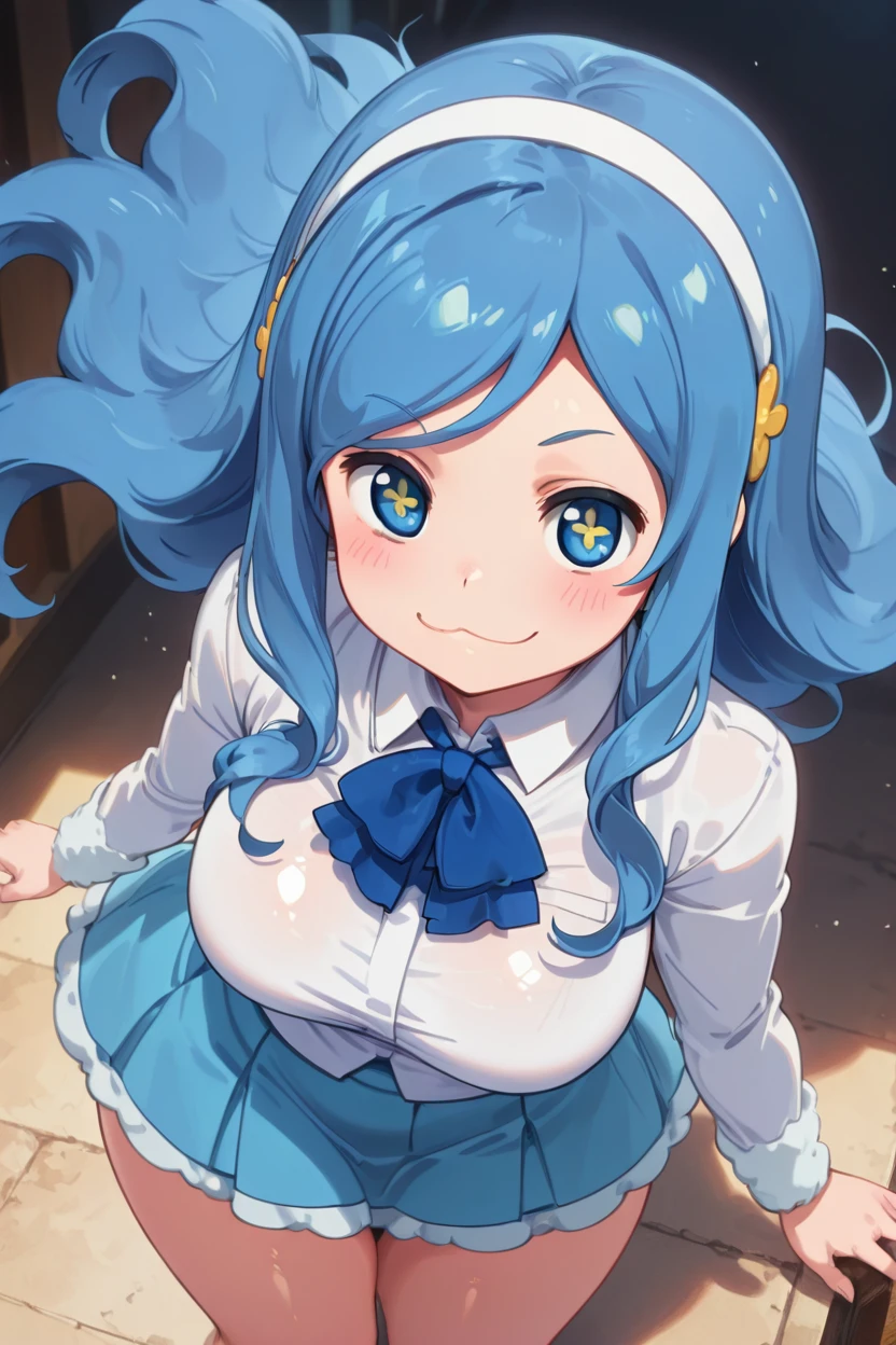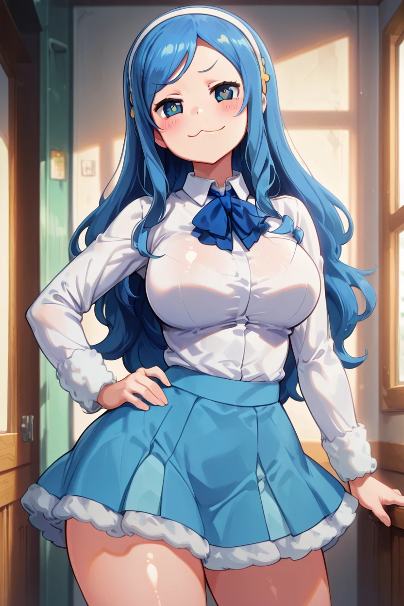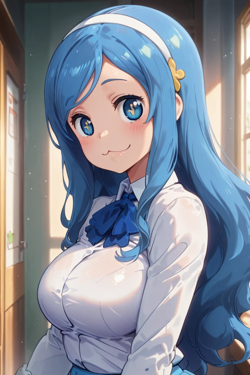 zzTachibana, blue hair, blue skirt, white shirt, white hairband,