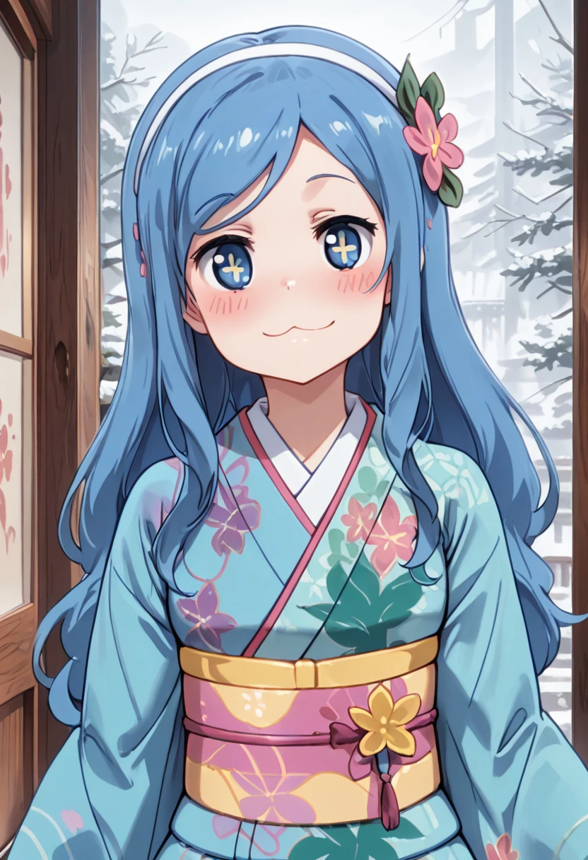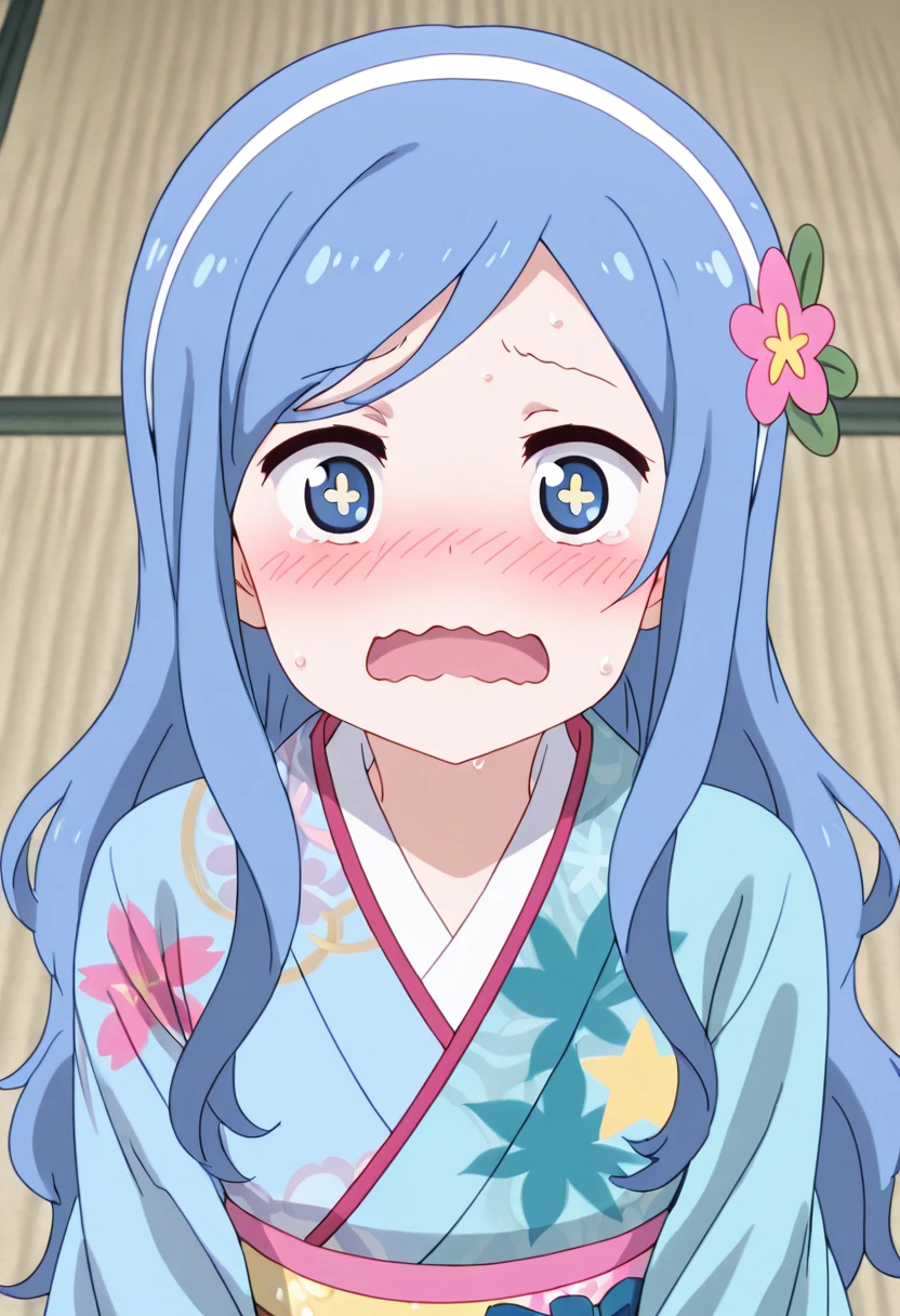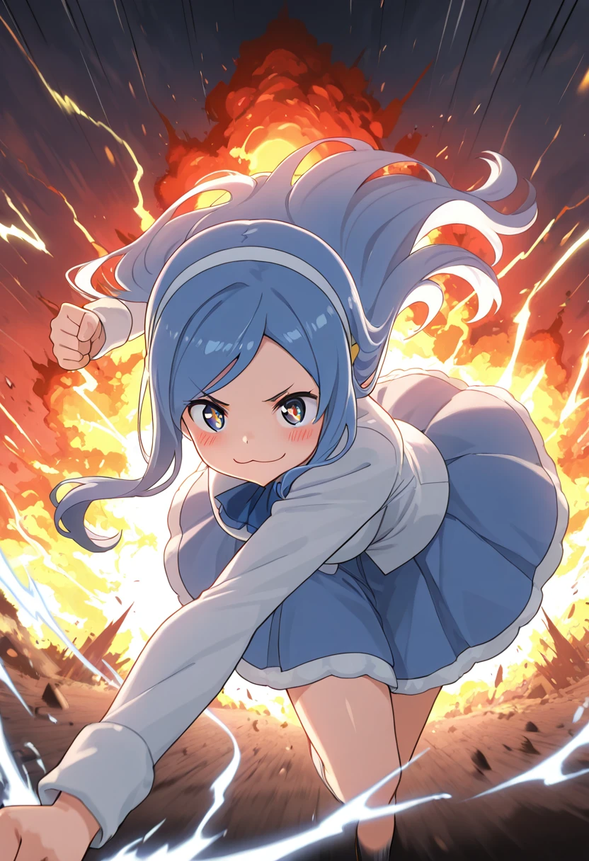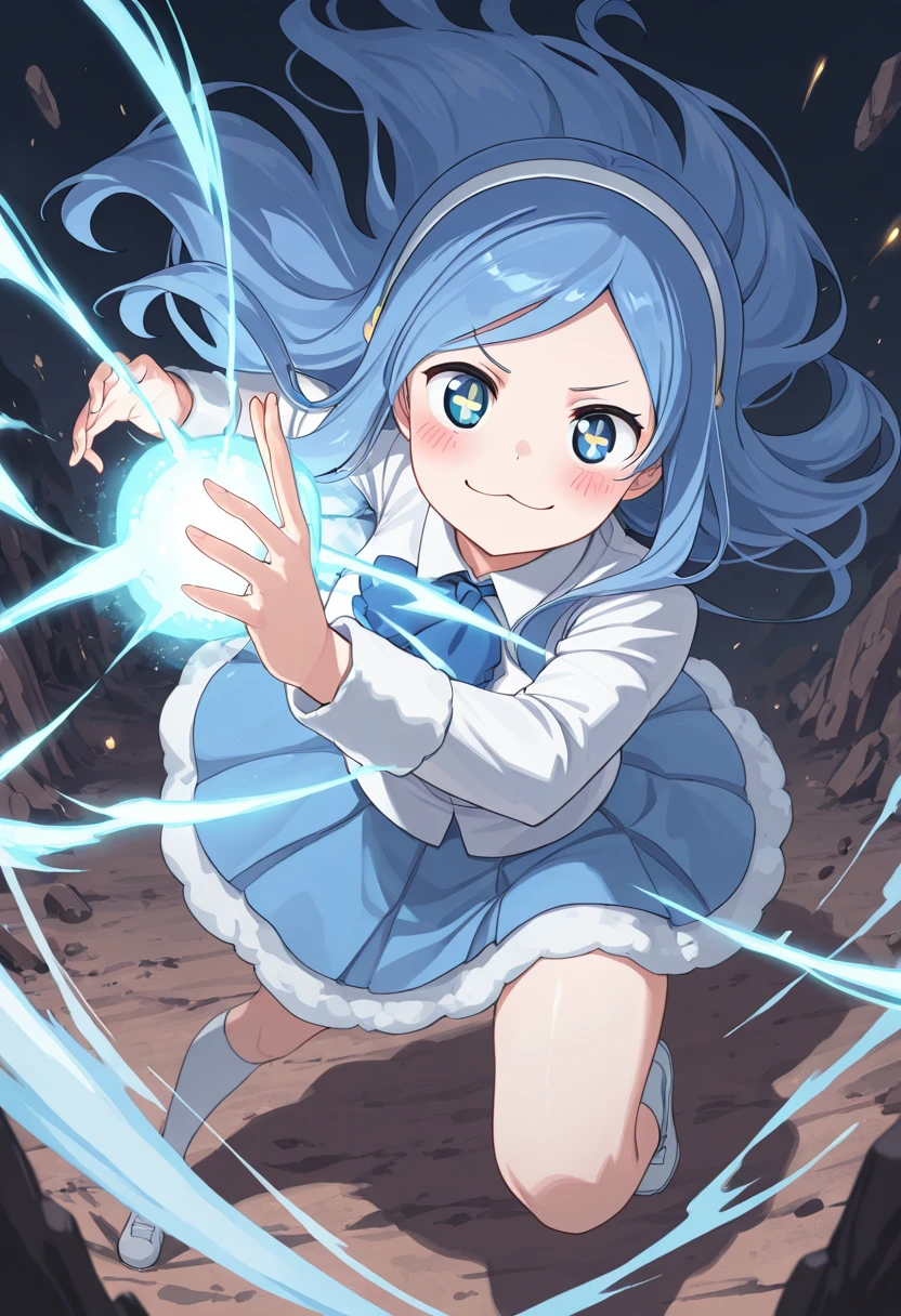 zzTachibana, blue hair, blue skirt, white shirt, white hairband,