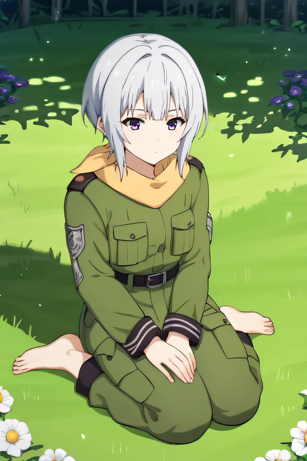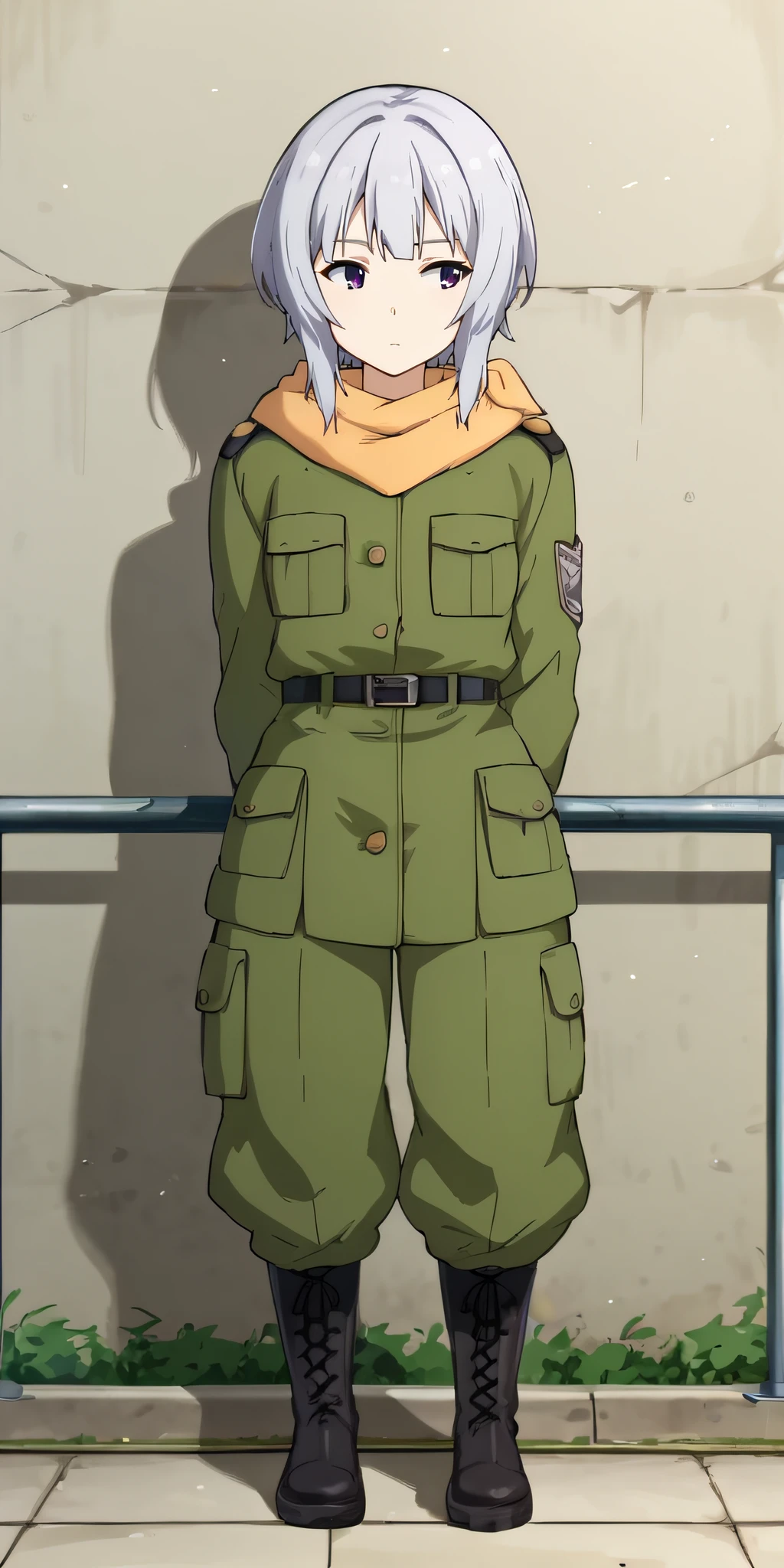 scarf, uniform, military uniform, belt, green pants, black boots