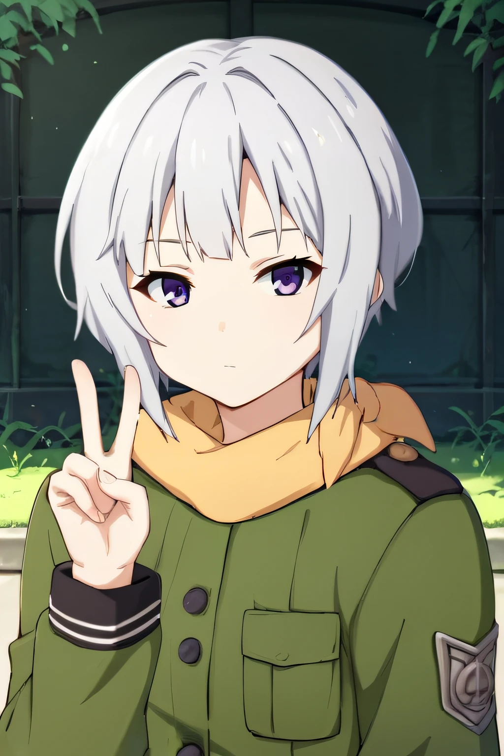 kannaginoel, short hair, grey hair, purple eyes