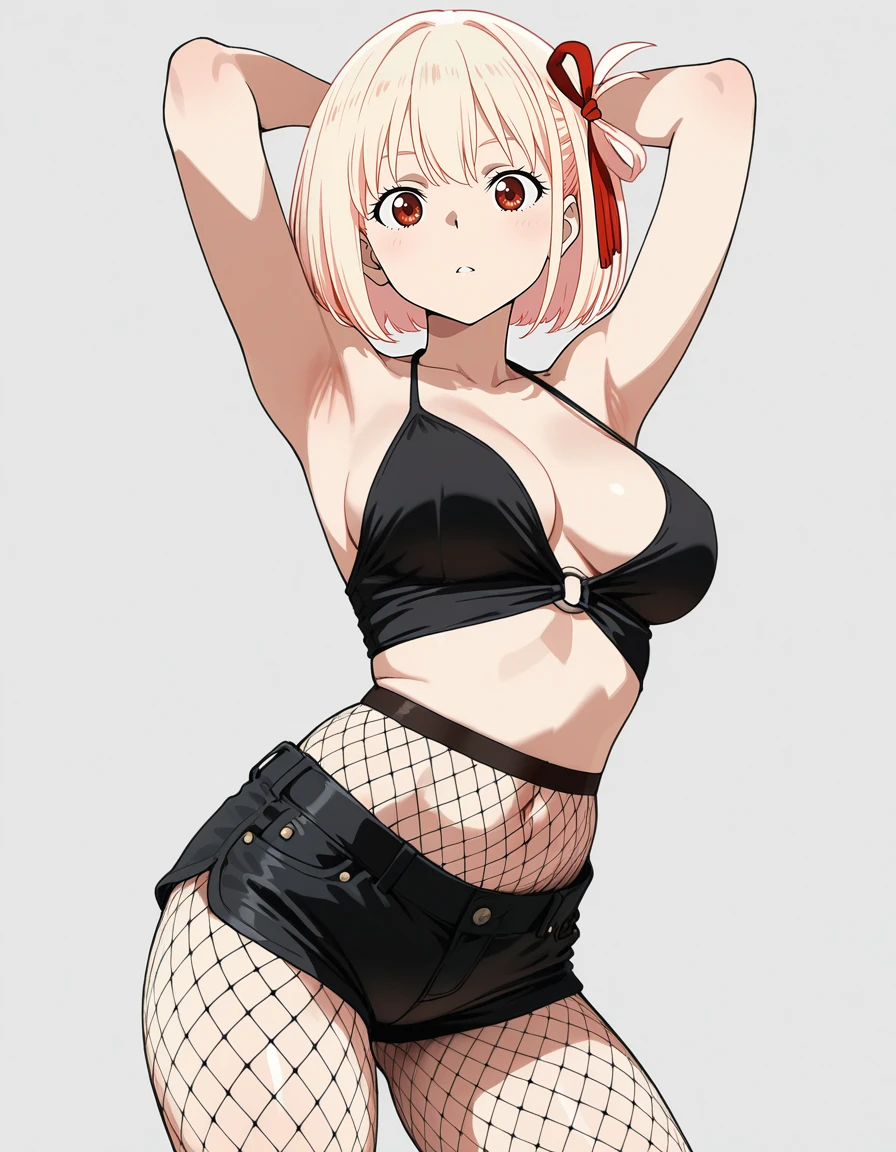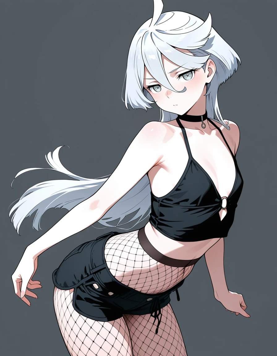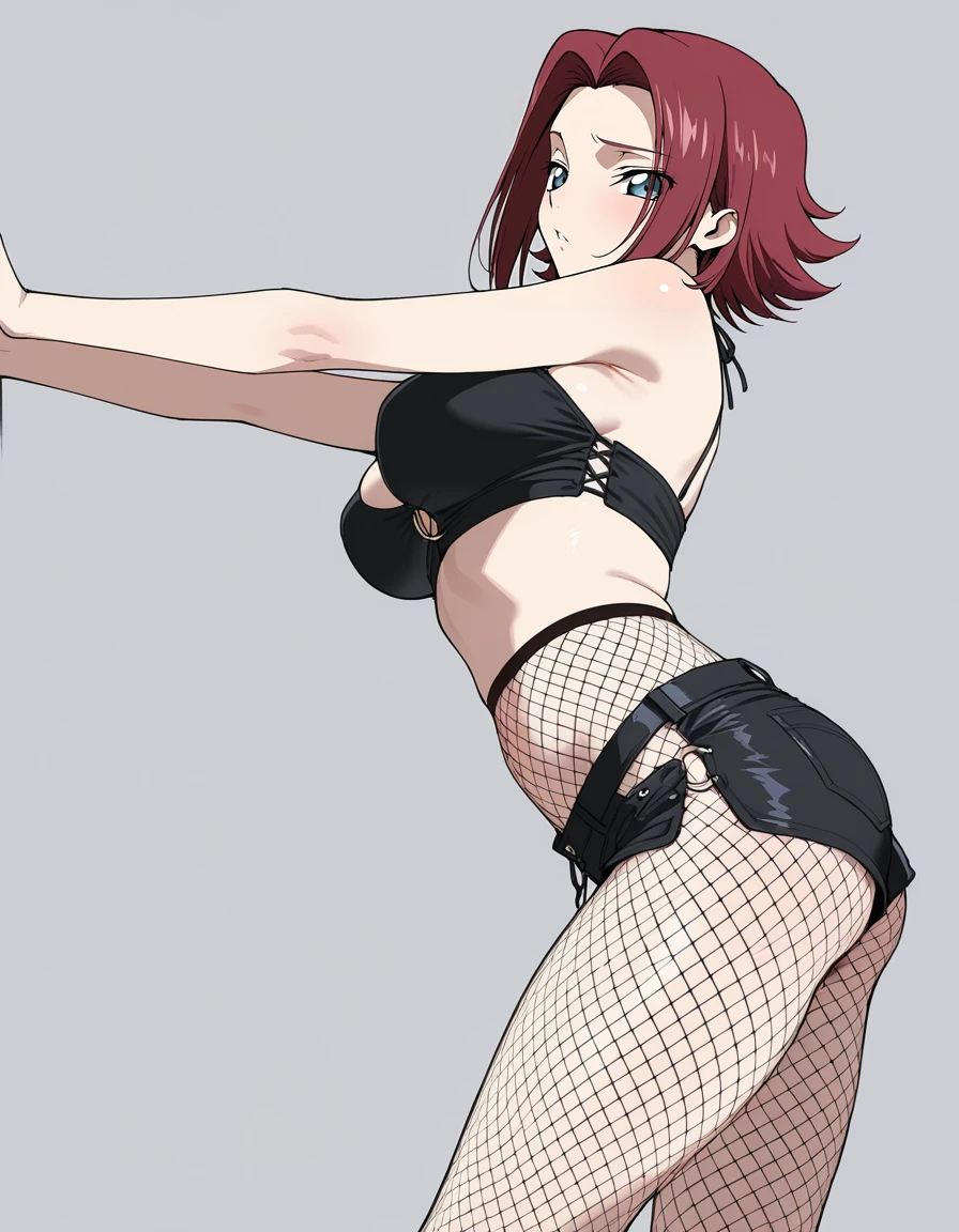 mai_clothingbcfk,black_camisole,fishnet_pantyhose,high-waist_pantyhose,black_short_shorts,o-ring