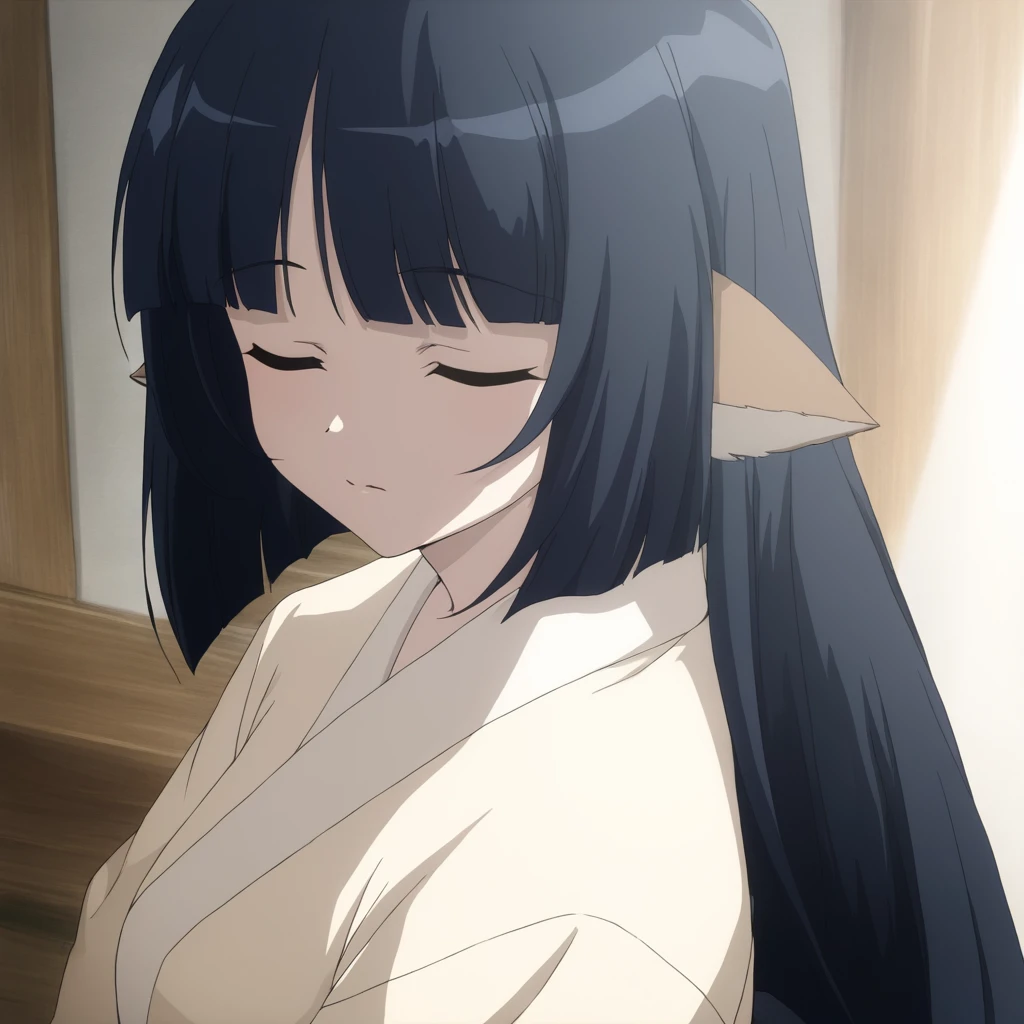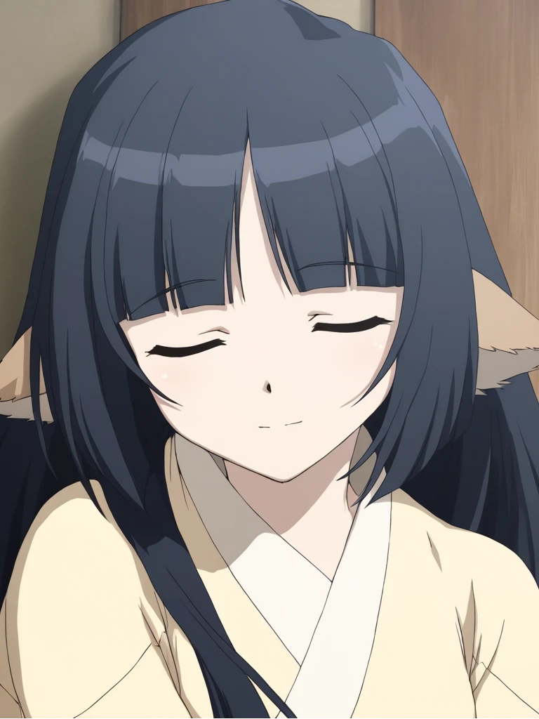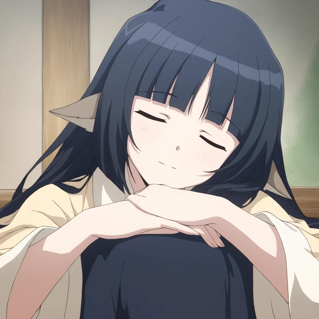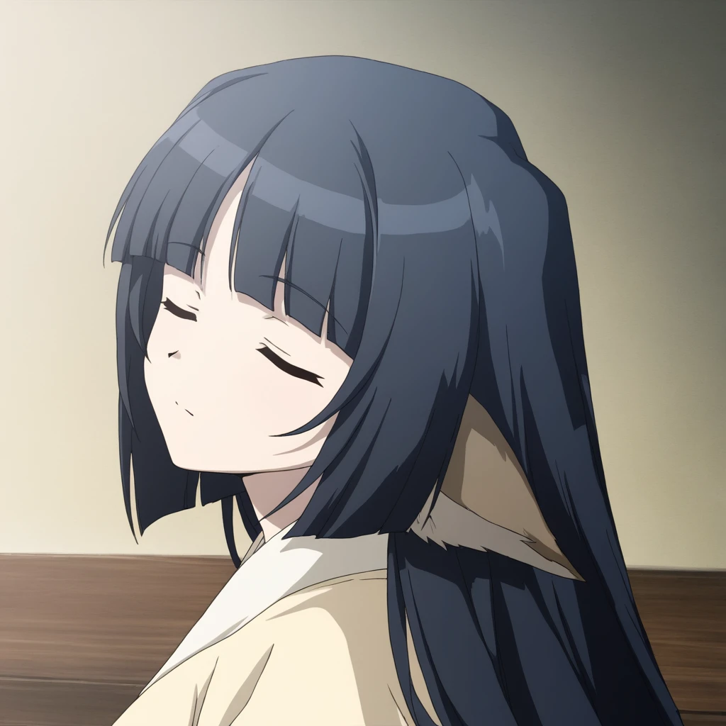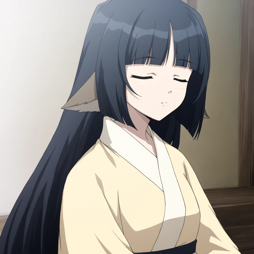 yuzuha, black hair, long hair, animal ears, closed eyes