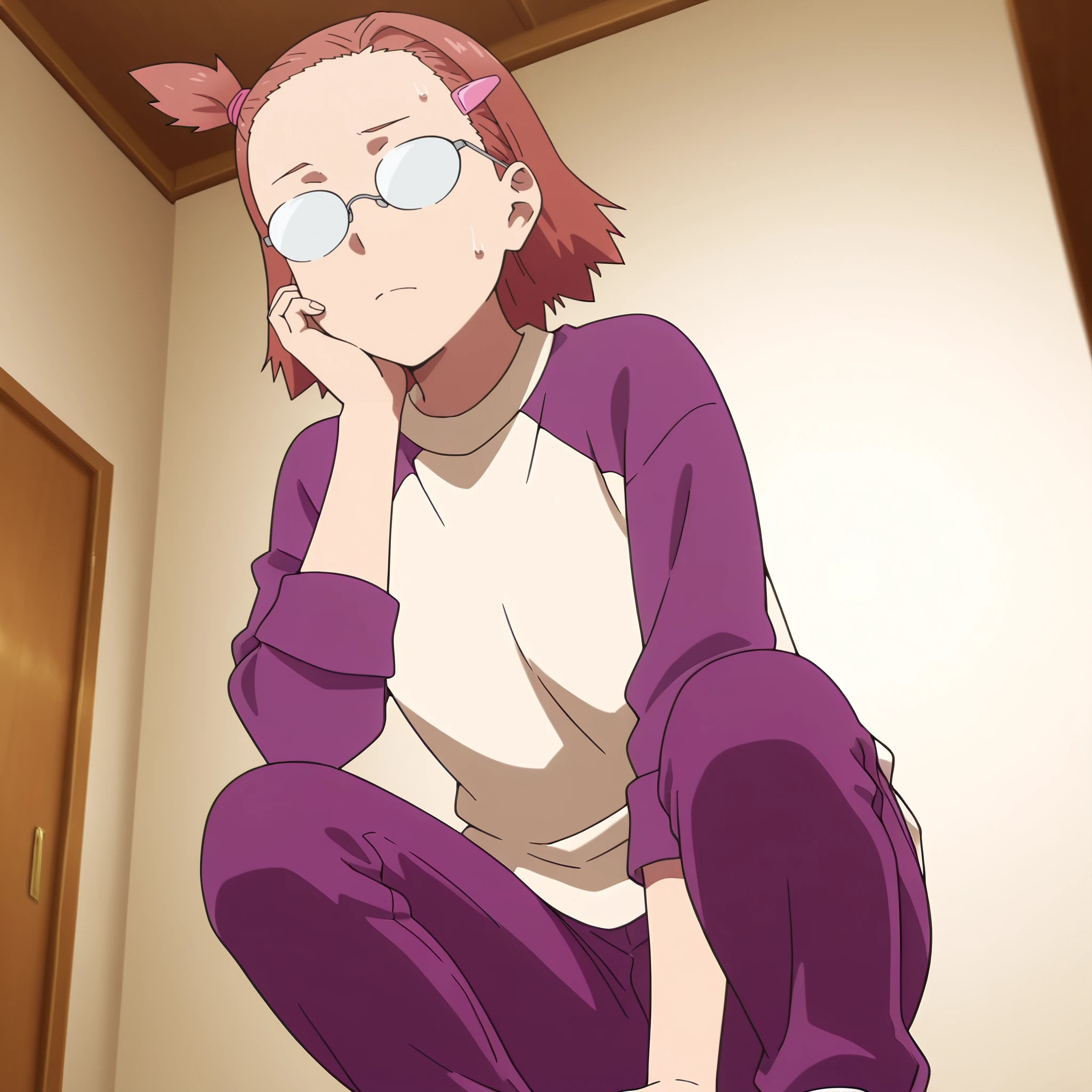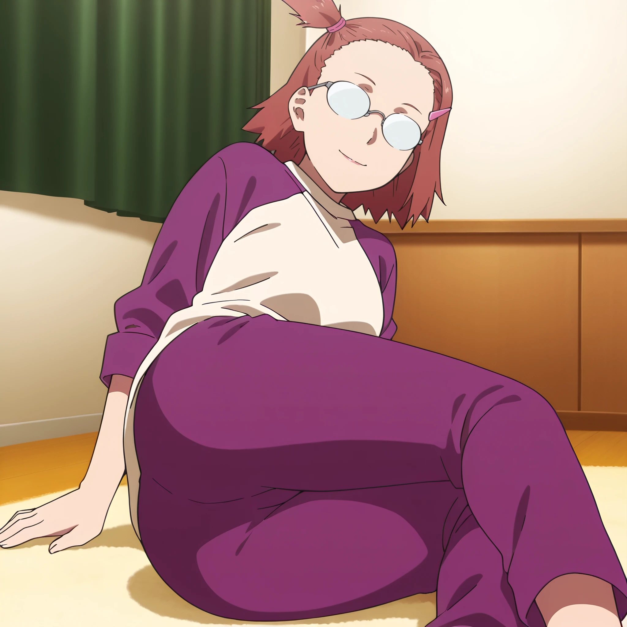 HinakoPurple, shirt, purple shirt, long sleeves, purple pants, hair tie,