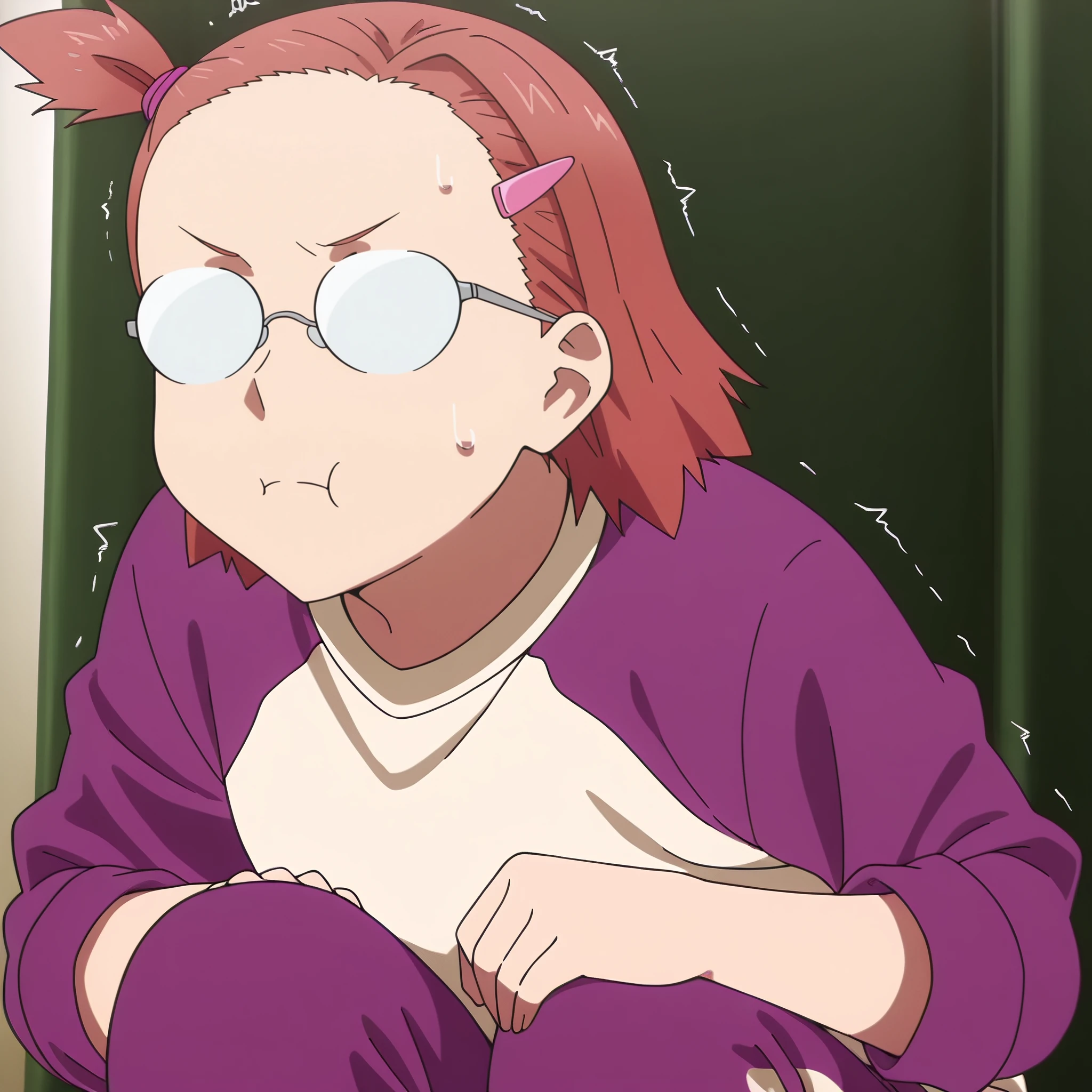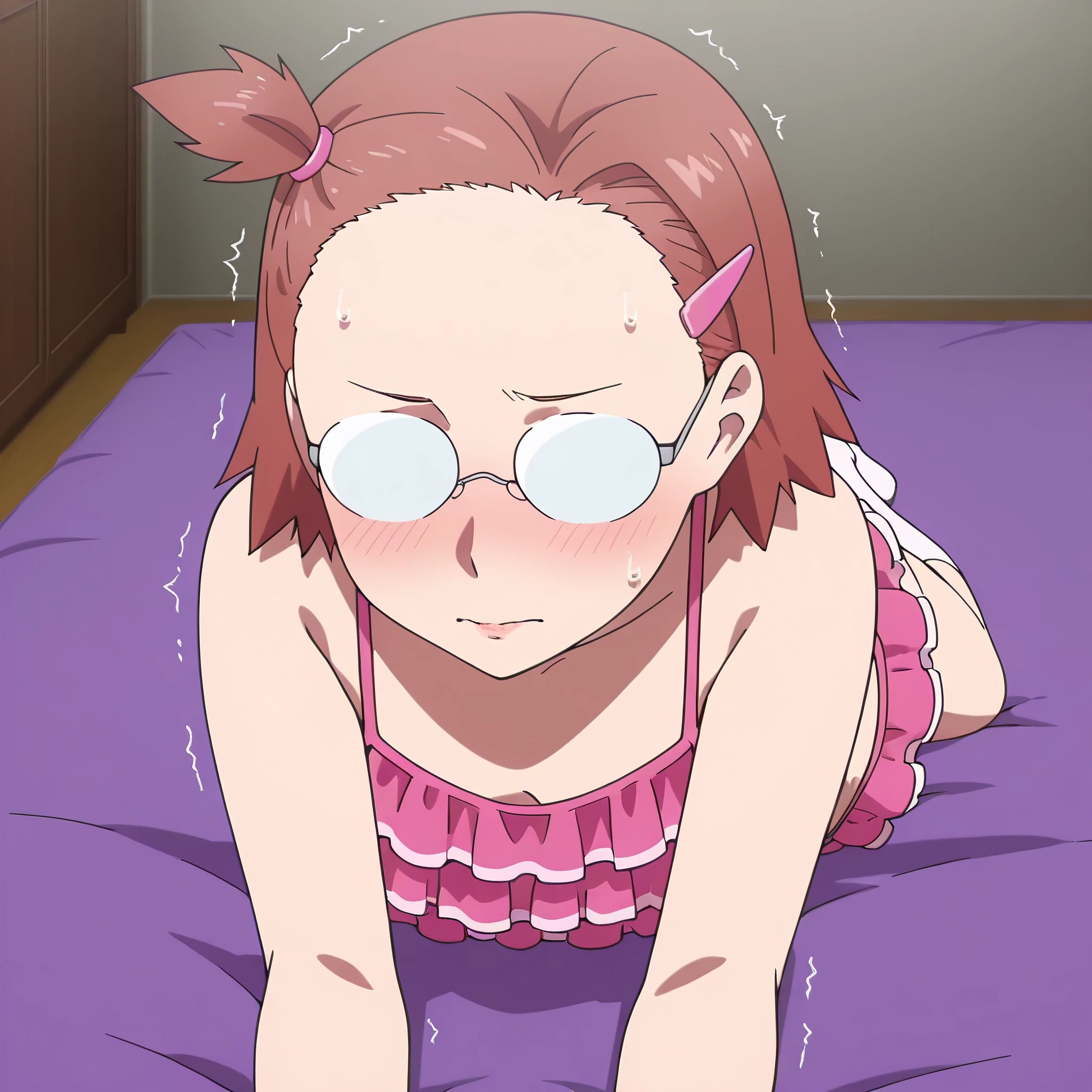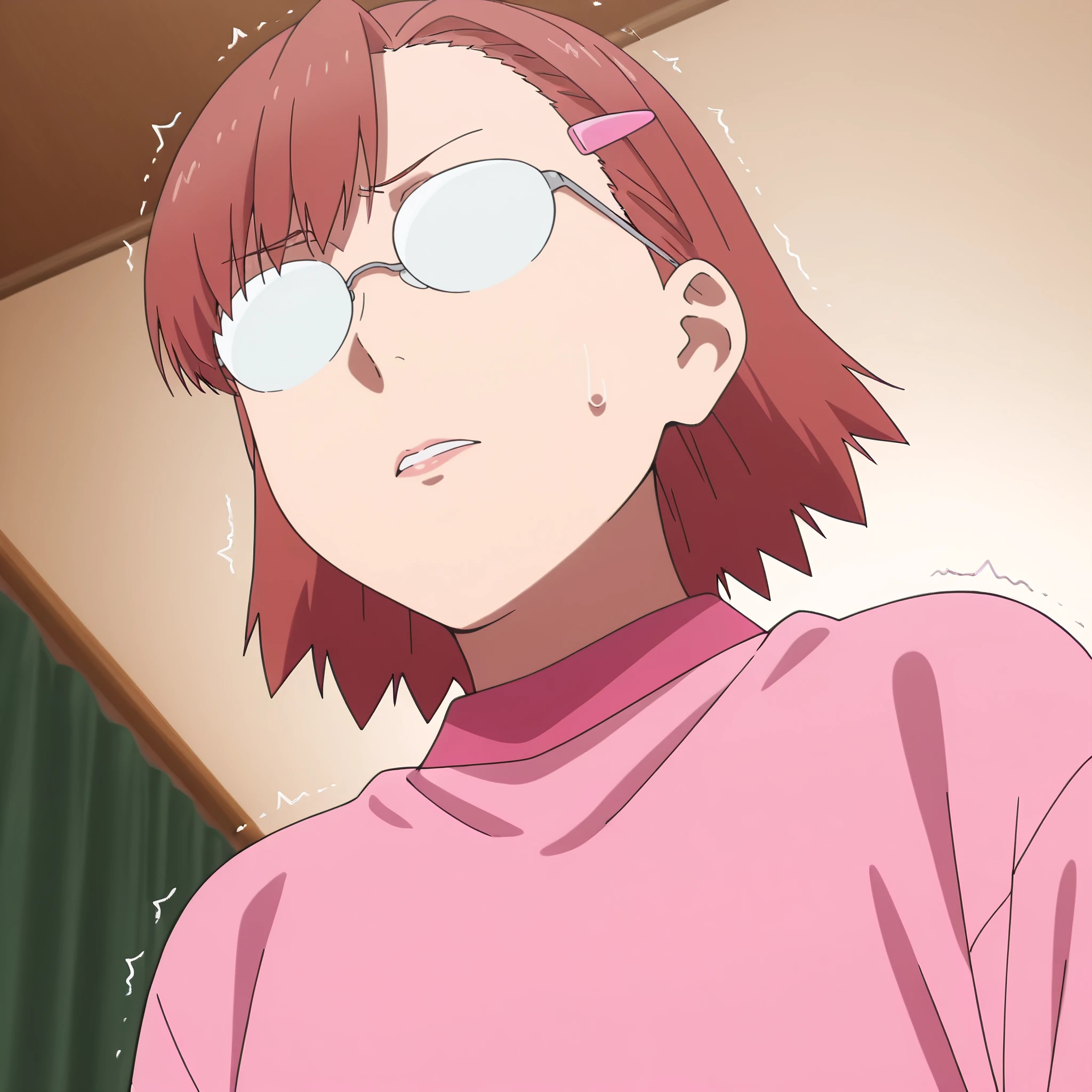 ARTHinako, short hair, glasses, hair ornament, hairclip, brown hair, brown eyes, bangs, black-framed eyewear, opaque glasses,