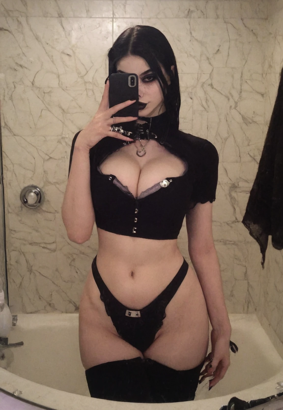 2) "holding her phone in her hand" - present in most mirror selfie pictures, not required for these.