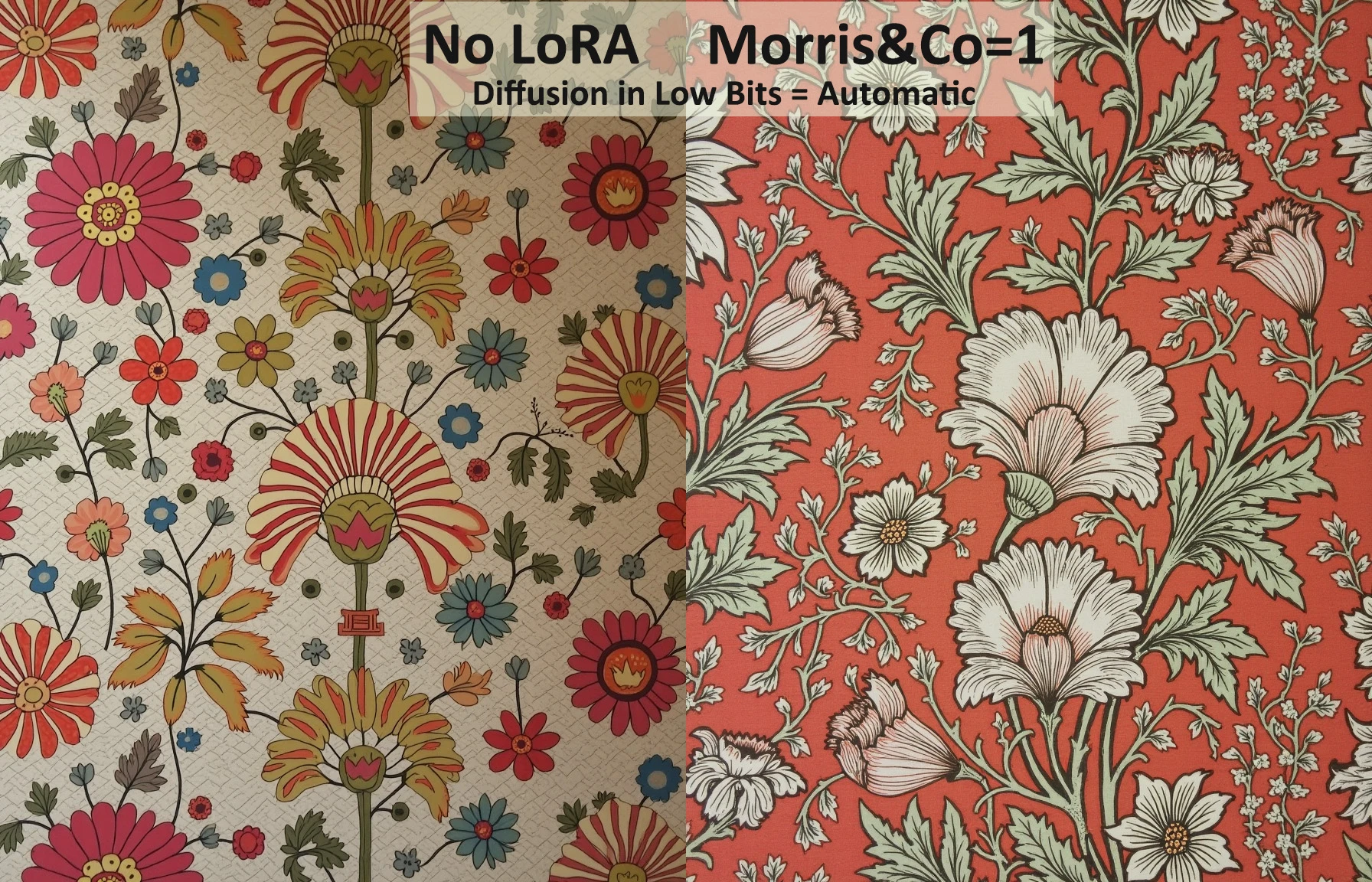Another one LoRA in the style of the legendary William Morris. I love patterns and Art Nouveau, couldn't resist. Some training images were corrected and redrawn to improve quality.