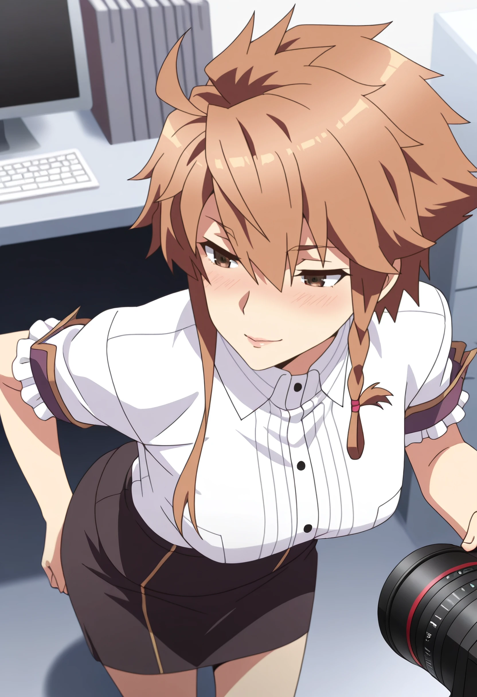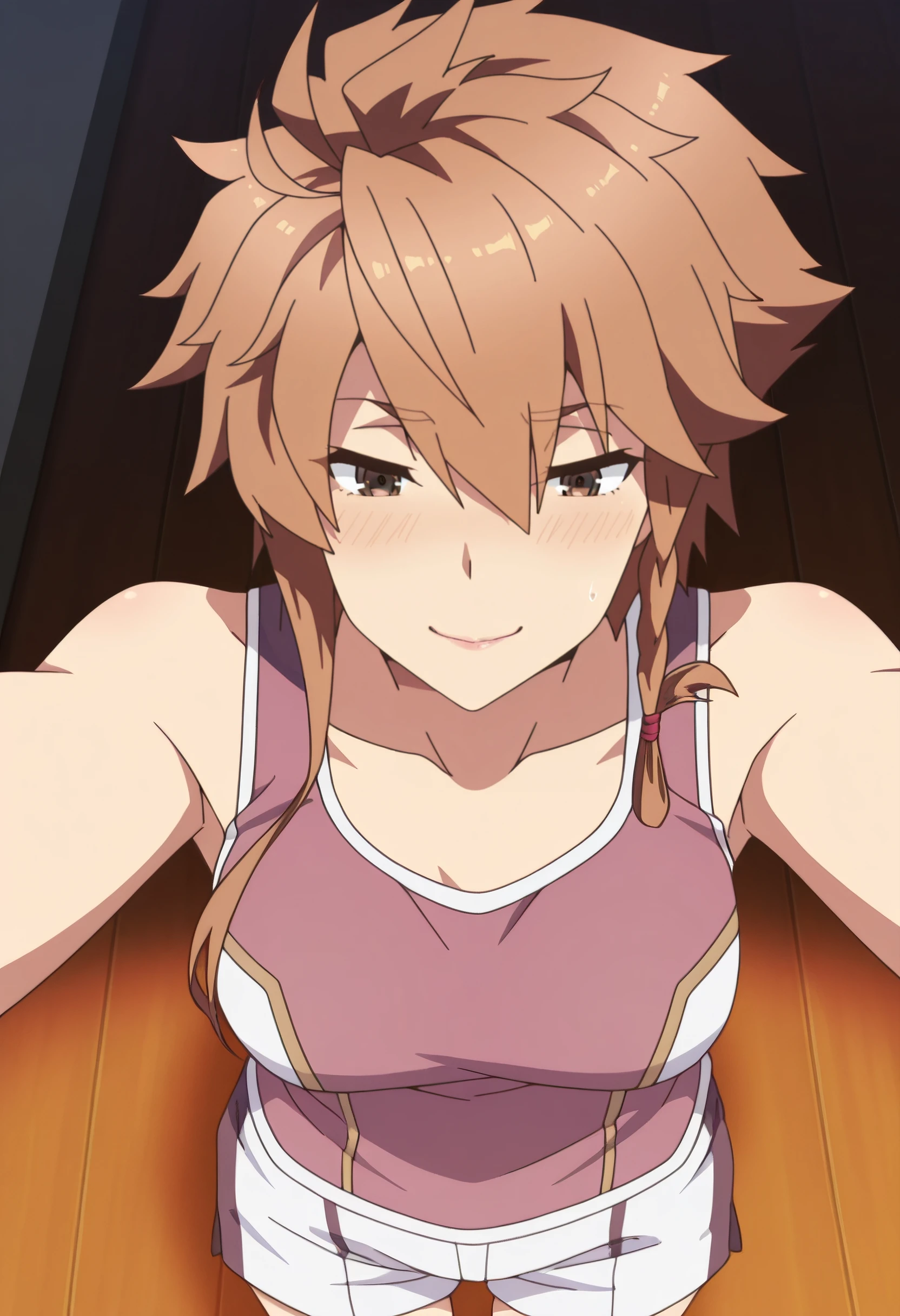 TNMMaki, braid, side braid, brown eyes, short hair with long locks, short hair, brown hair, hair between eyes, ahoge, sidelocks, asymmetrical hair,