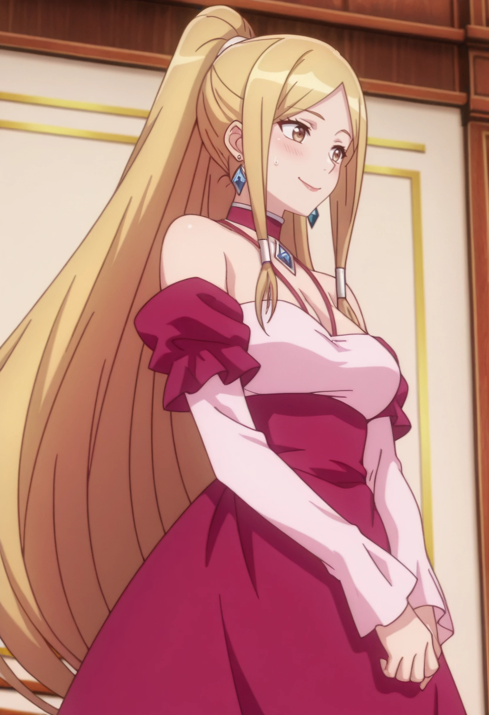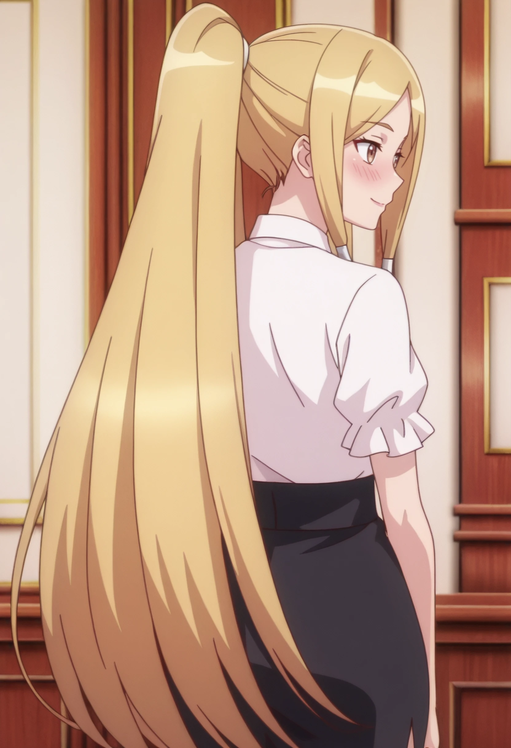 OWSDarcy, long hair, blonde hair, ponytail, sidelocks, parted bangs, very long hair, hair tubes, high ponytail, brown eyes,