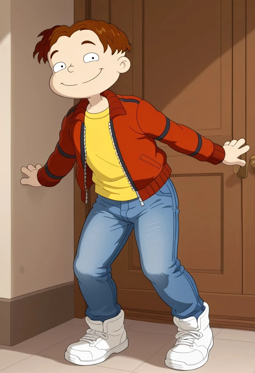 Season 2: Phil DeVille S2, Solo, 1boy, brown hair, black eyes, red jacket, yellow undershirt, blue jeans, white shoes
