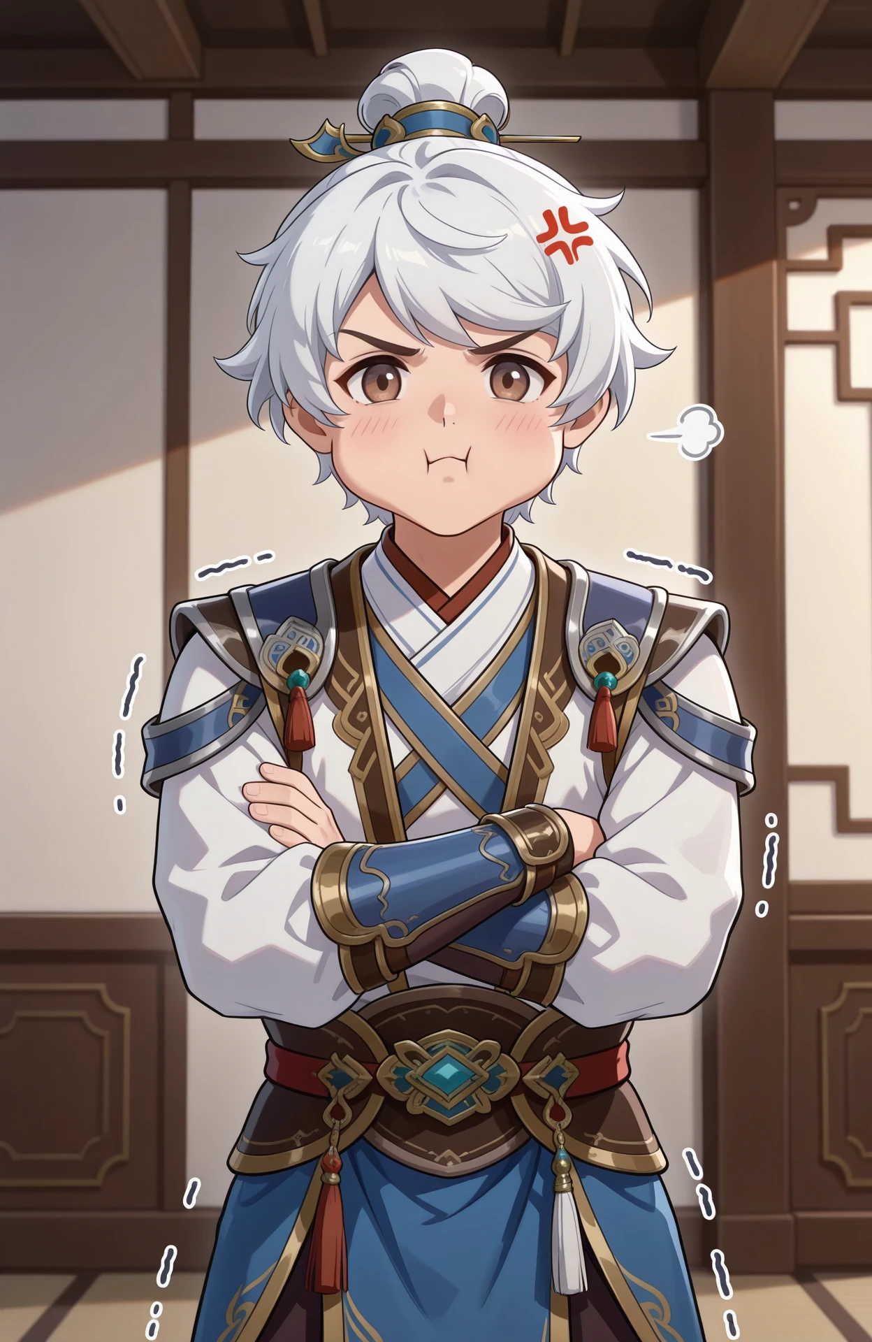 zhonghui,hair bun,long sleeves,white hair,chinese clothes