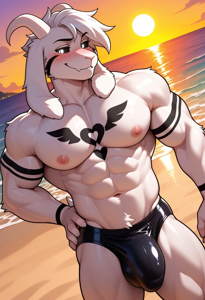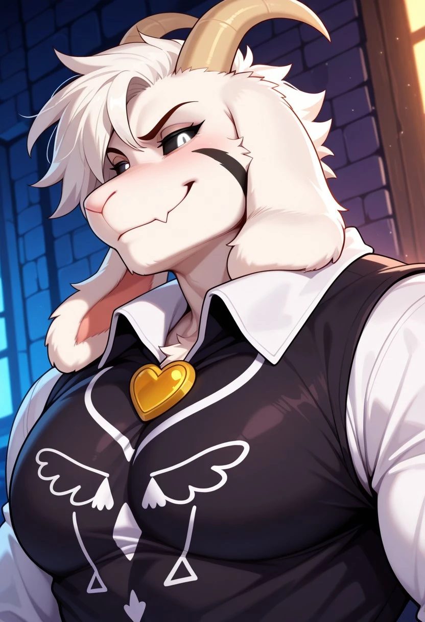 Trigger Words : AsrielDreemur (undertale), goat boy, white fur, black sclera, white eyes, black facial markings