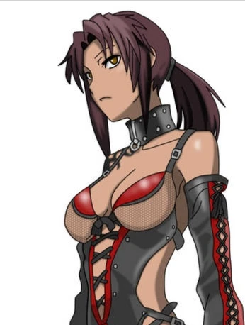 ScarlettQ_BlaclLagoon, bdsm, lingerie, makeup, thighhighs, thigh_boots, high_heels, hair_ribbon, red_ribbon, cross-laced_footwear, dominatrix, red_bondage_outfit, red leather, fishnets, corset, cleavage, belts, arm belt, shoulder_tattoo, detached_sleeves, collar, chain, lace trim, lace trim underwear, panties, thong, lace-up_boots, lace-trimmed legwear, garter_straps, lace_trim