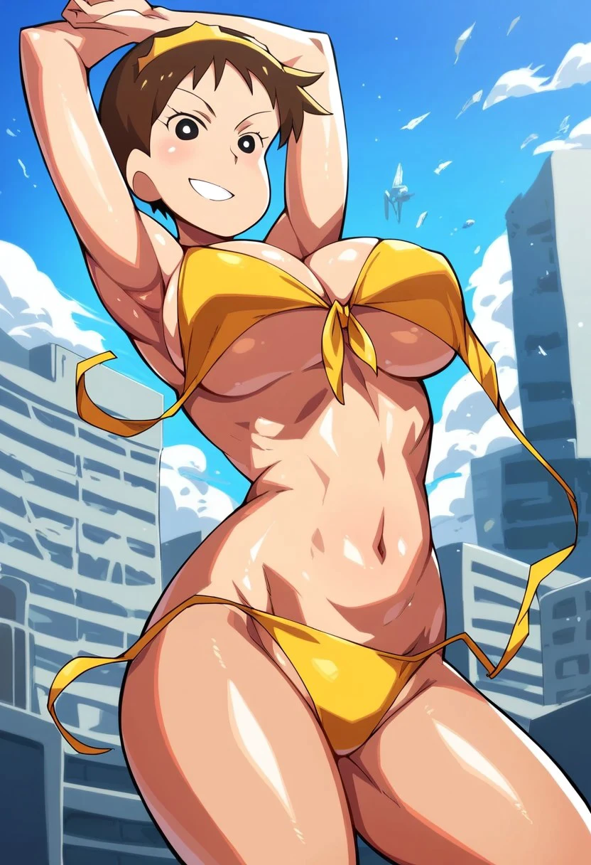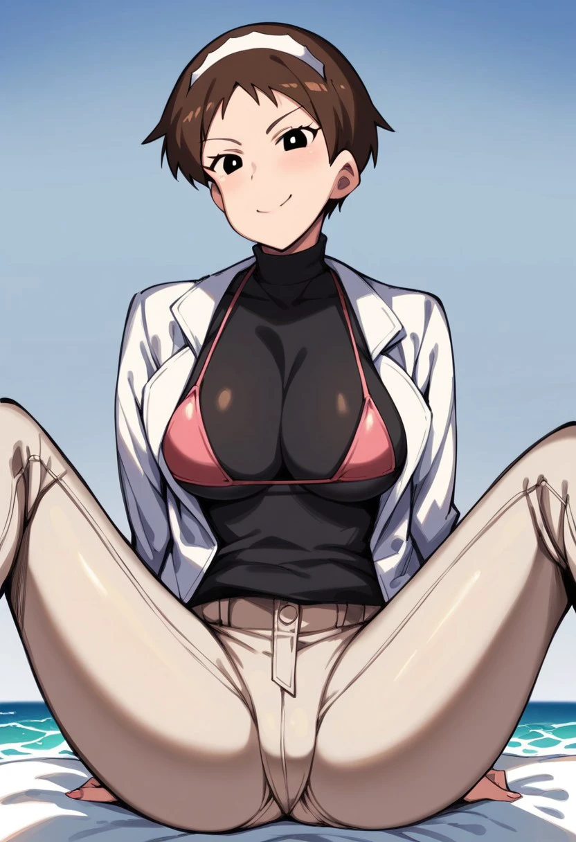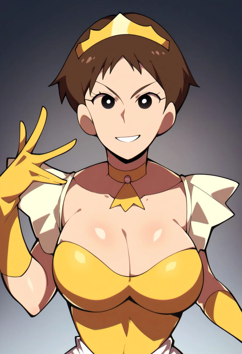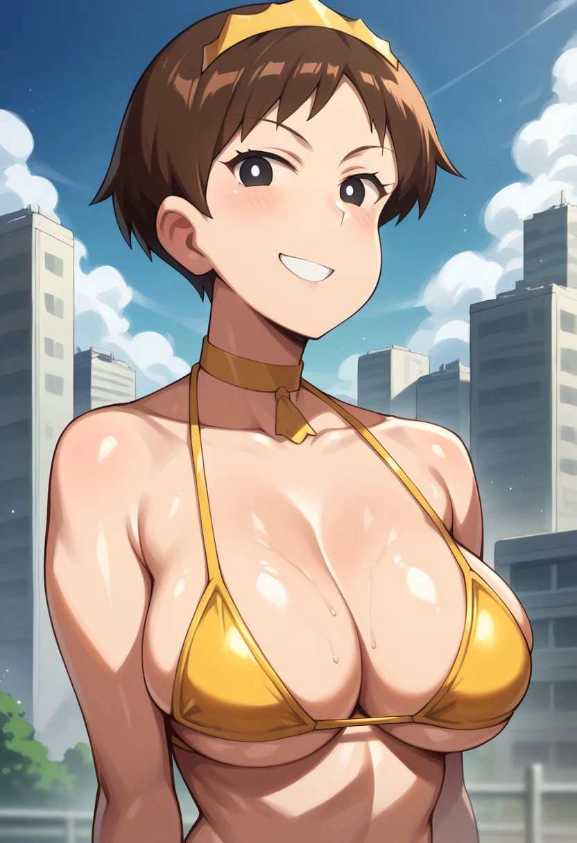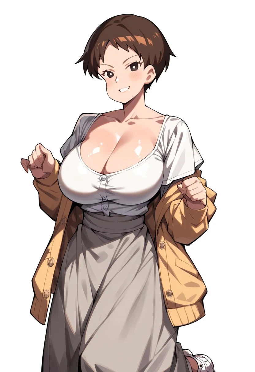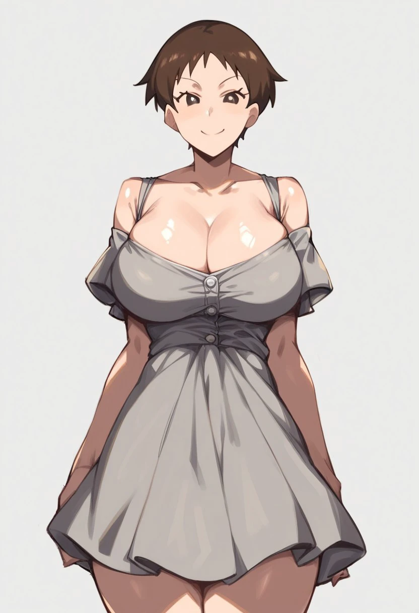 kurara, breasts, large breasts, brown hair, short hair, black eyes,