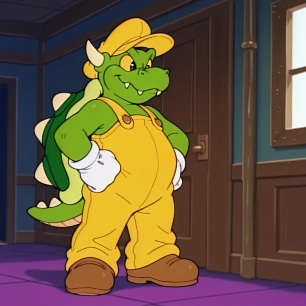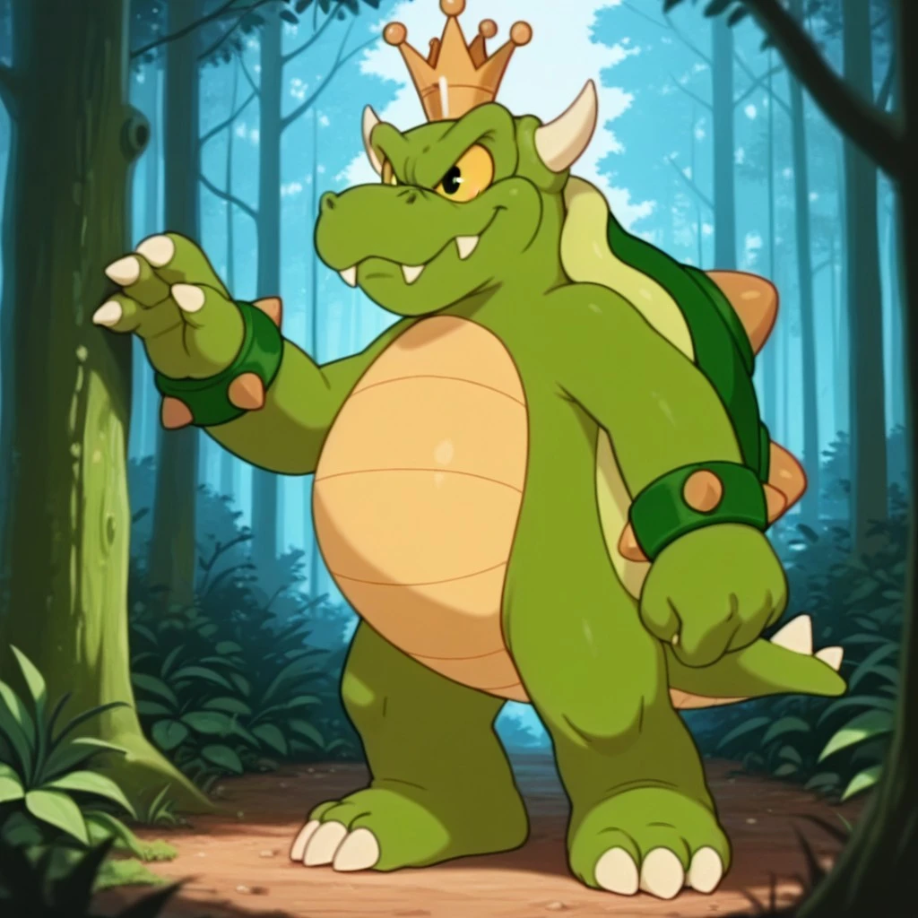 KoopaASMB3, semi-anthro, male, turtle, green skin, horns, yellow sclera, black eyes, spiked shell,