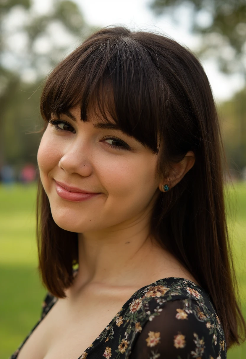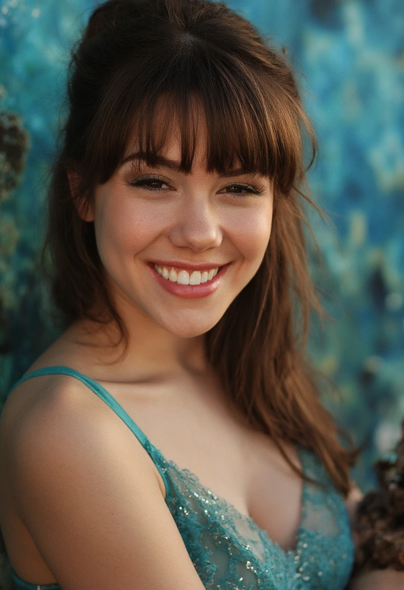 Note: To get her iconic look, please use "with bangs" when prompting to get her classic hair style. Flux learned a lot and will generate her without it as often as not. Good for generalization, bad for iconic appearance.
