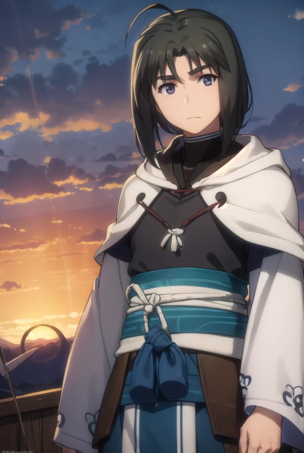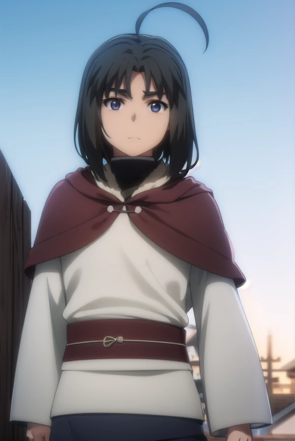 haku, black hair, ahoge, male focus, (black eyes:1.3), (parted bangs:1.5),
