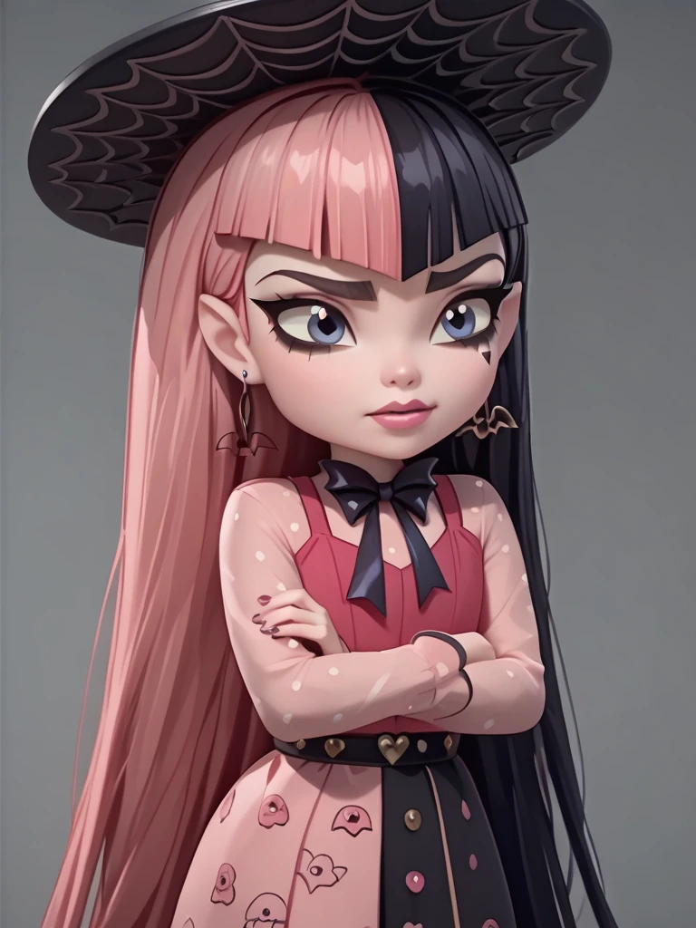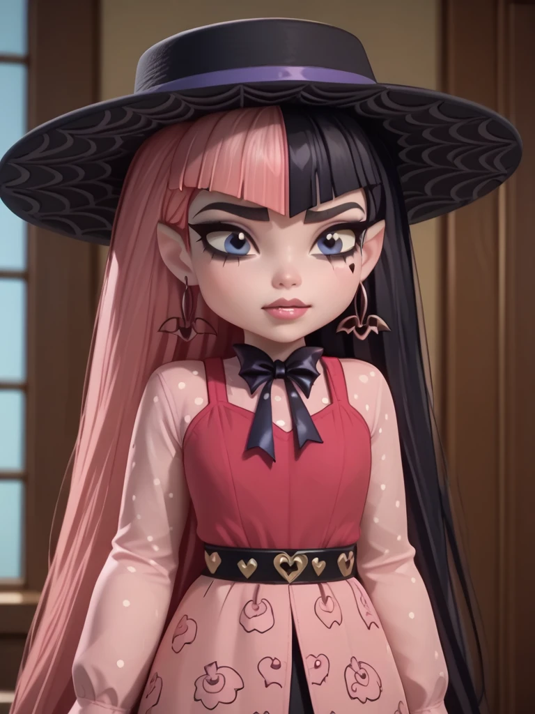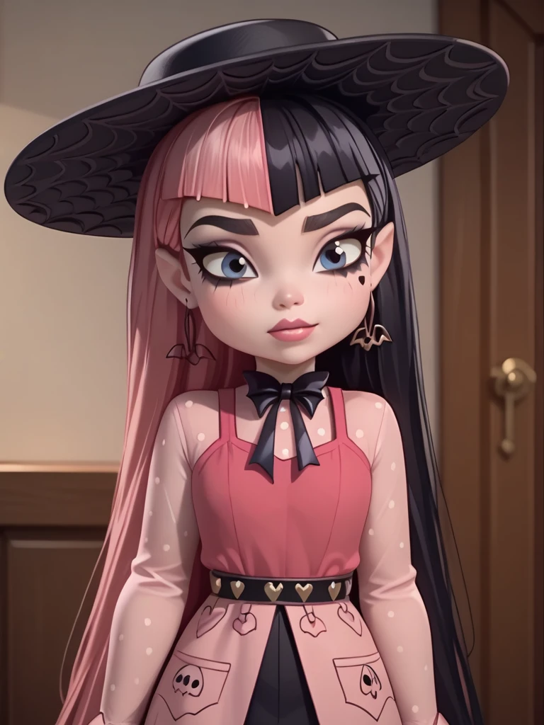 draculaura, streaked hair, two-tone hair, pink hair, black hair,