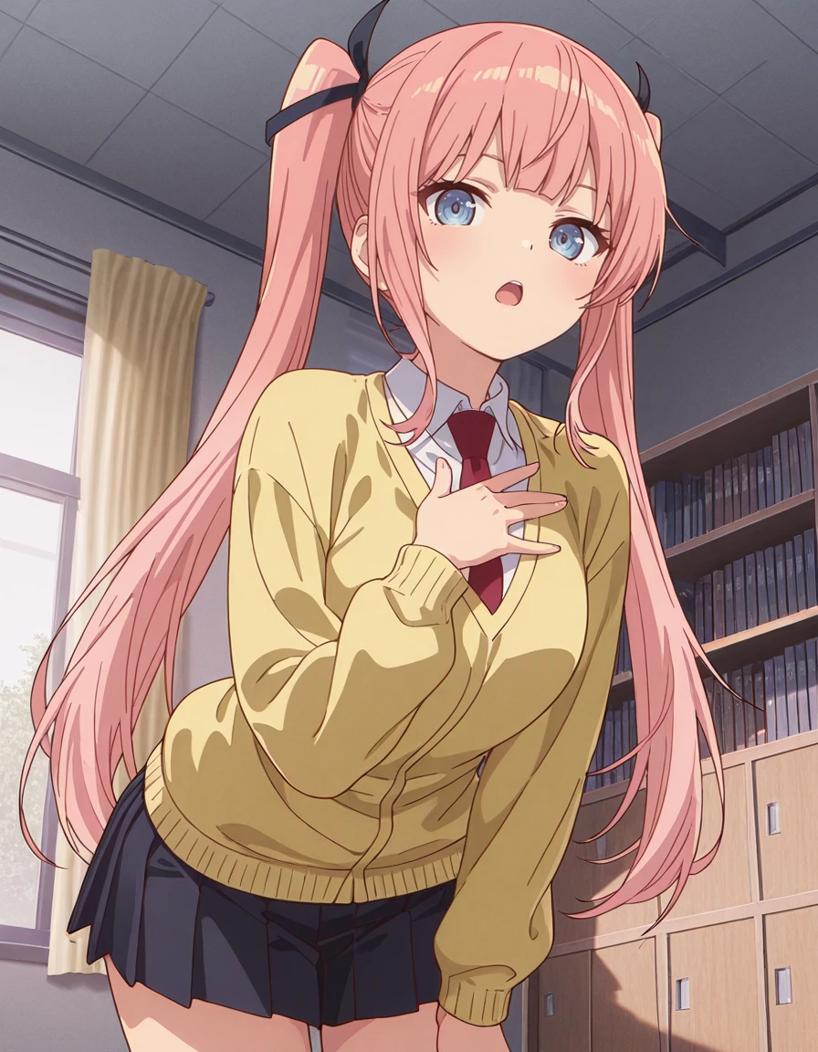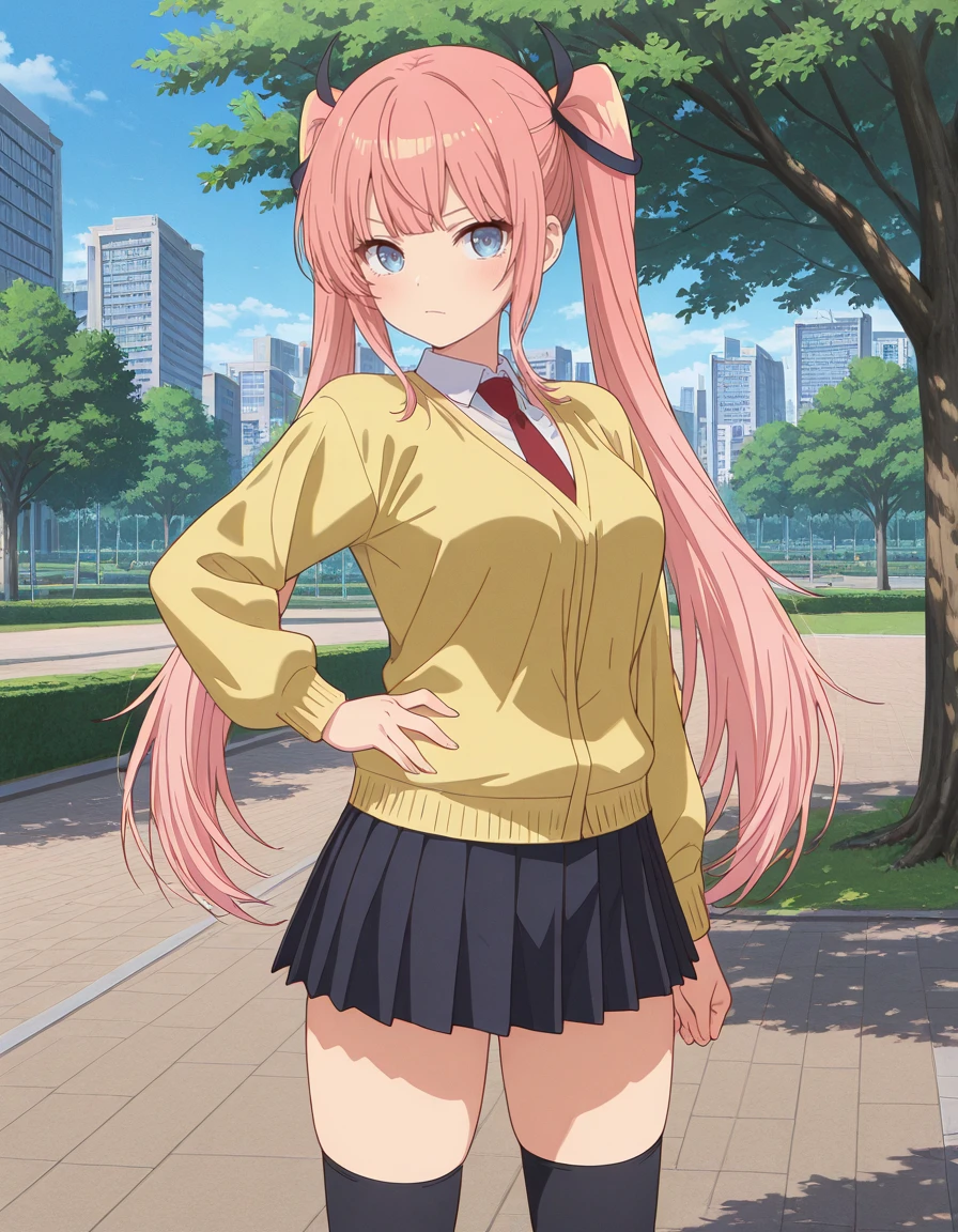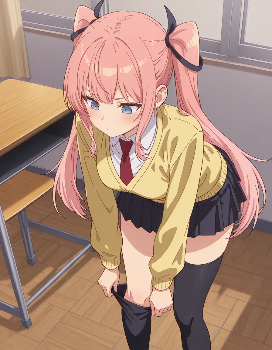 <lora:nene_himekawa-mayonaka_heart_tune-s1-ixl-anime-soralz:1>, nene himekawa (mayonaka heart tune), long hair, pink hair, twintails, gradient hair, sidelocks, hair ribbon, blue eyesOutfit - School Uniform