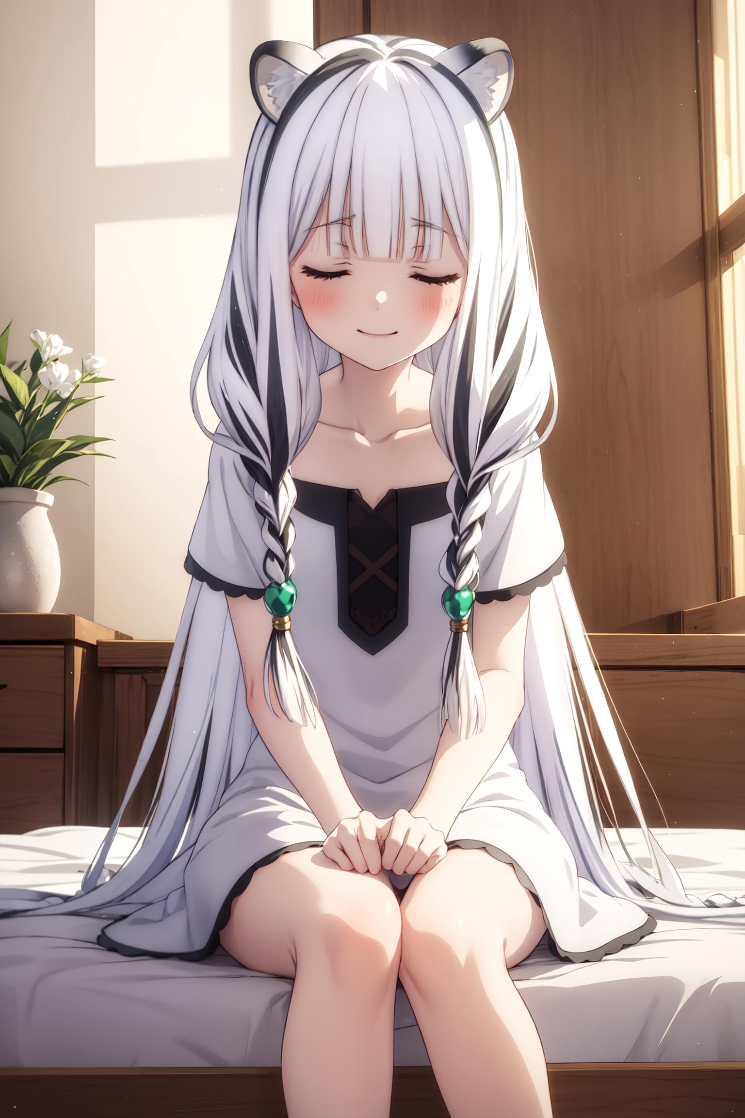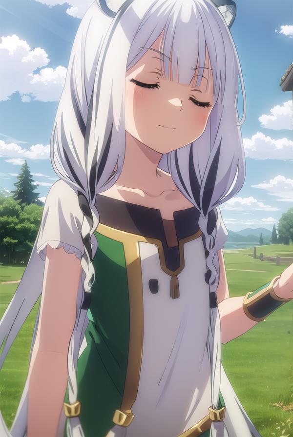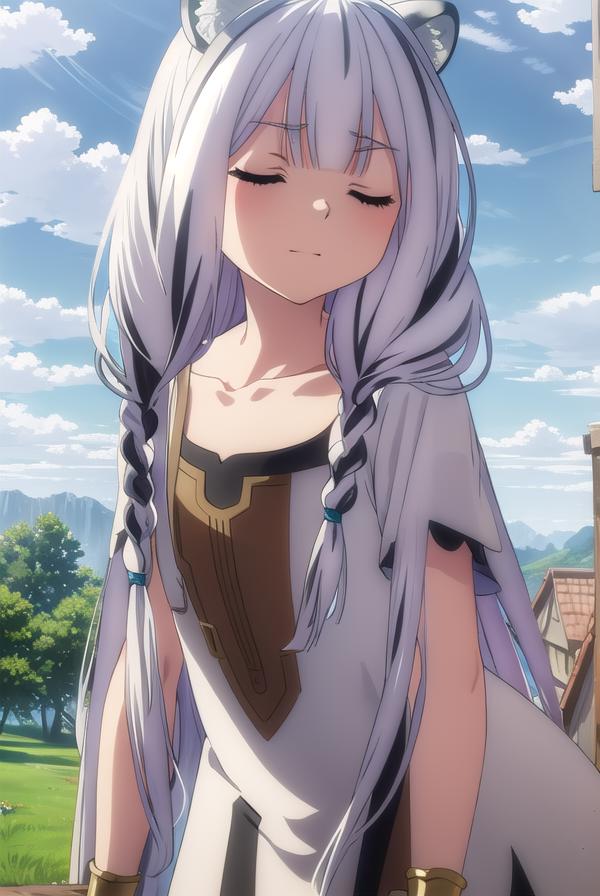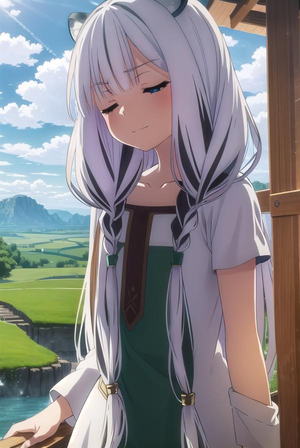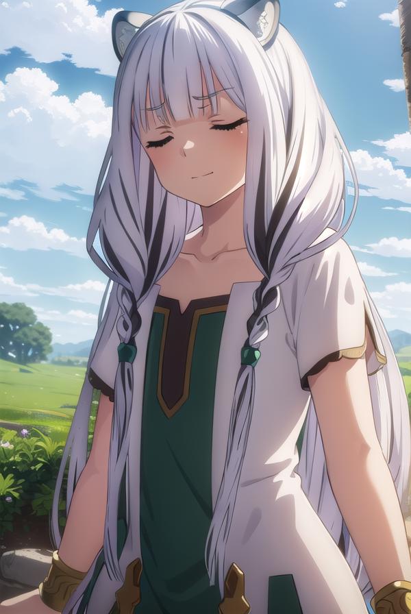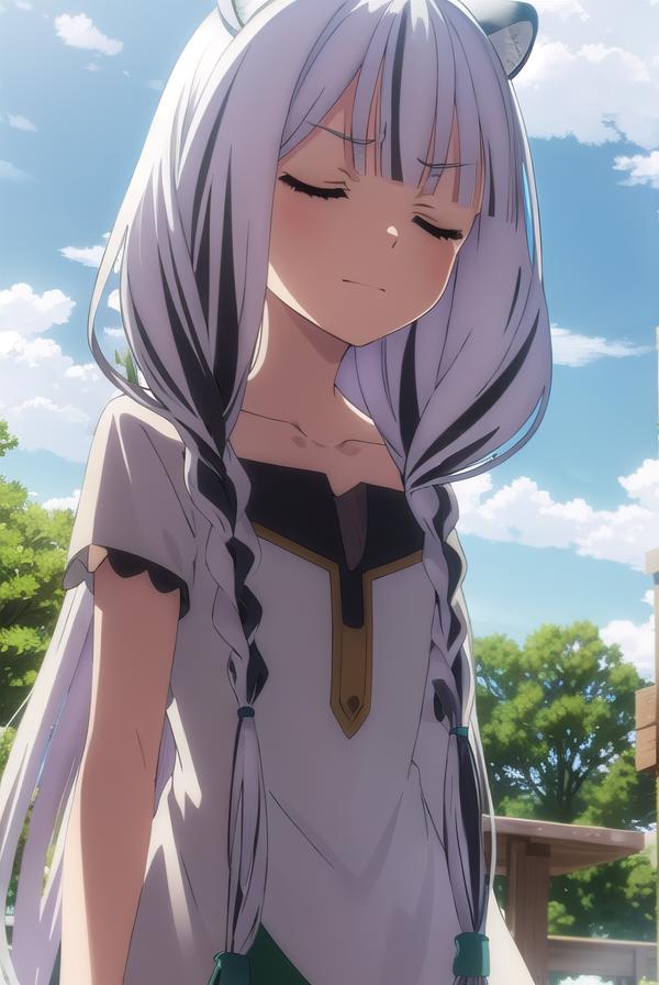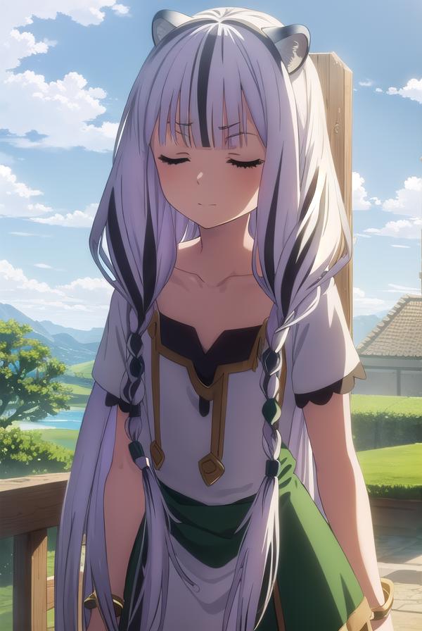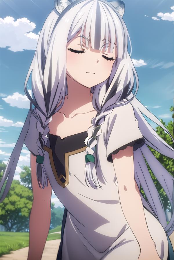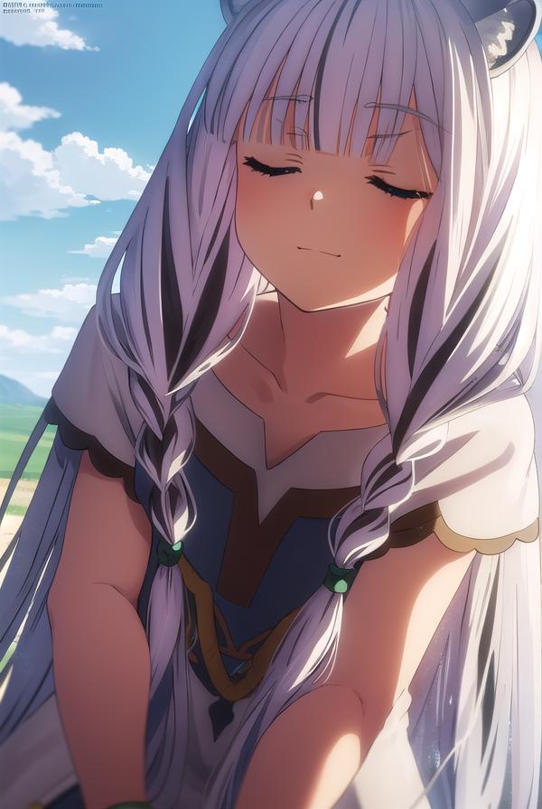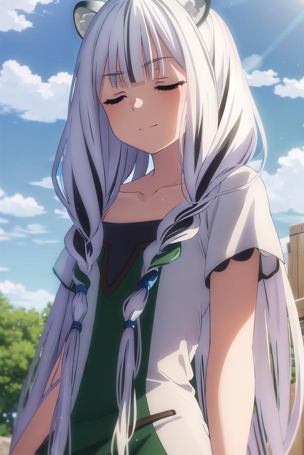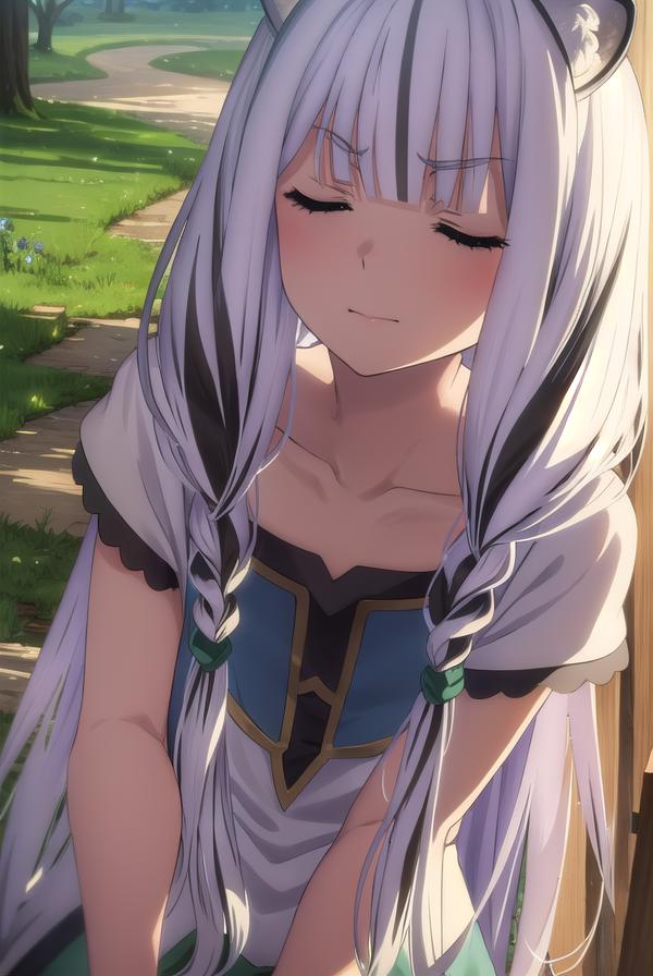 atla, long hair, bangs, animal ears, very long hair, (closed eyes:1.5), braid, white hair, multicolored hair, twin braids,