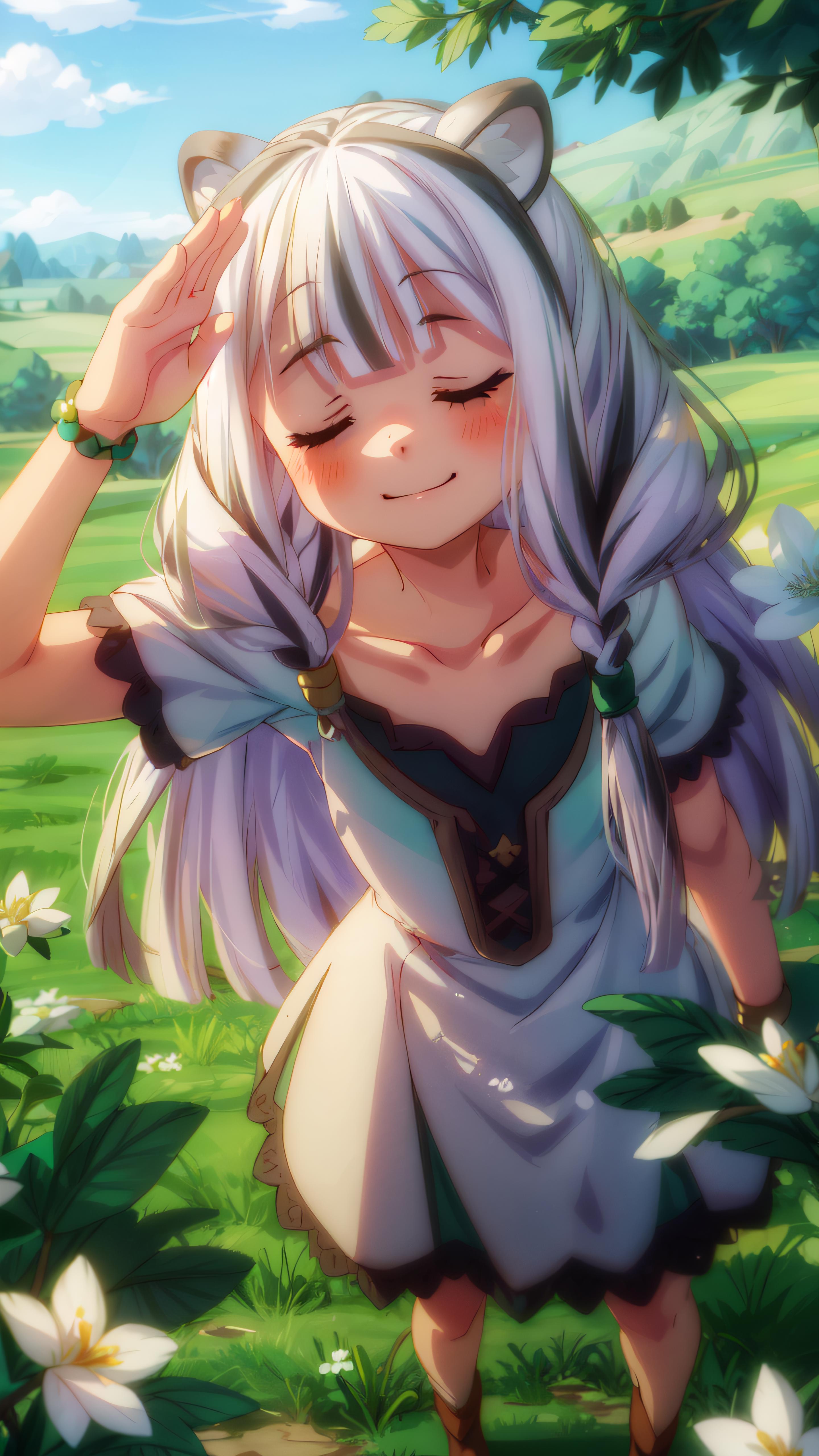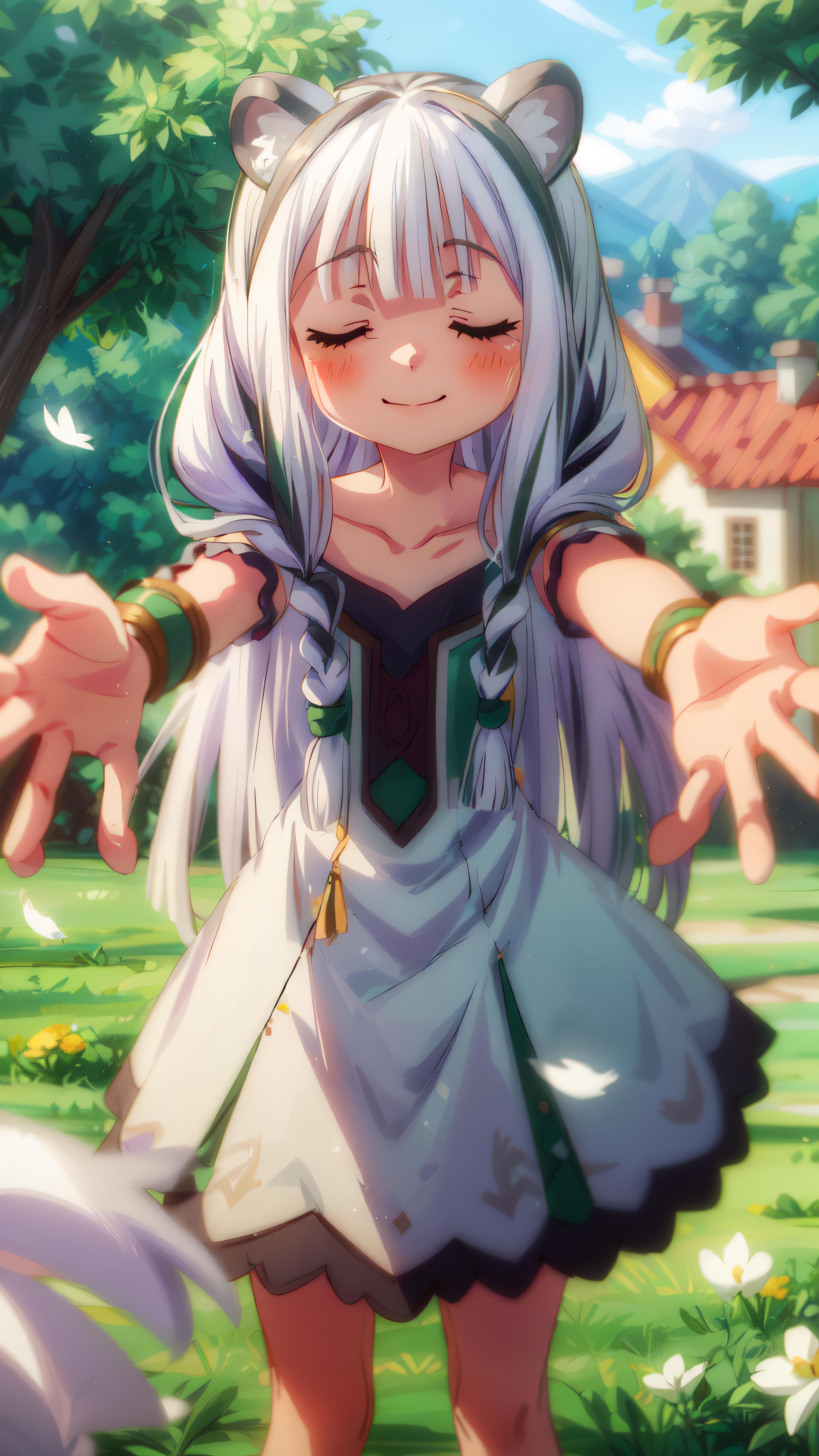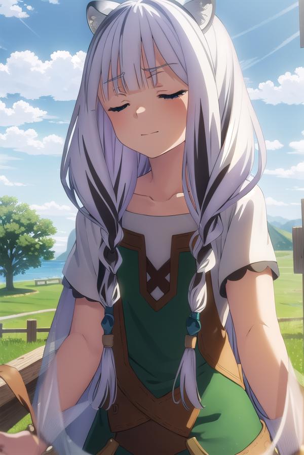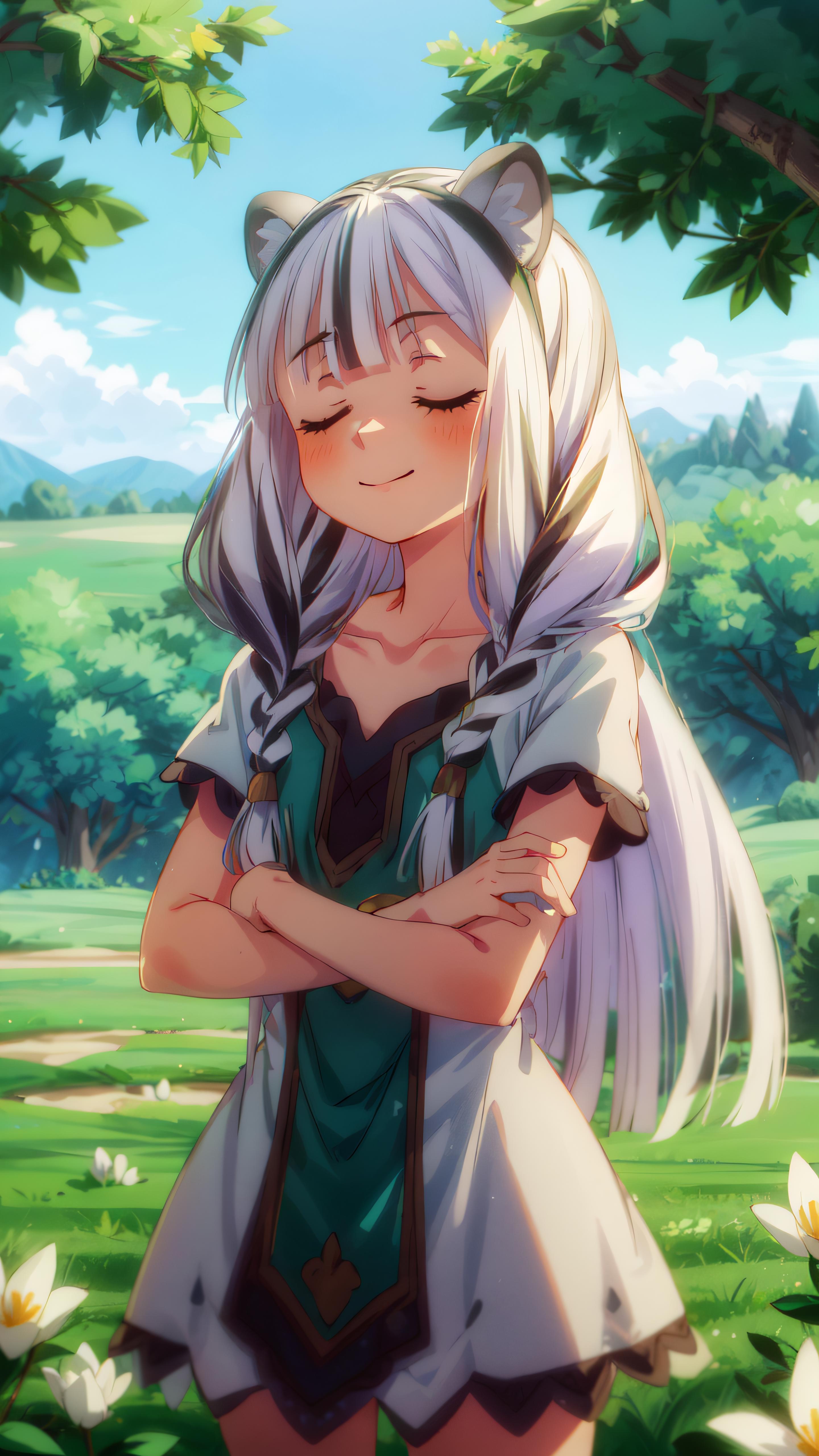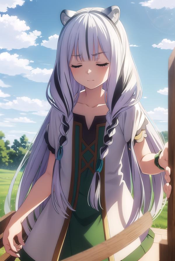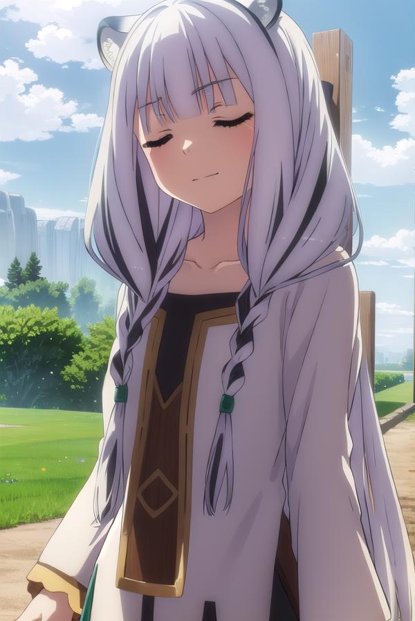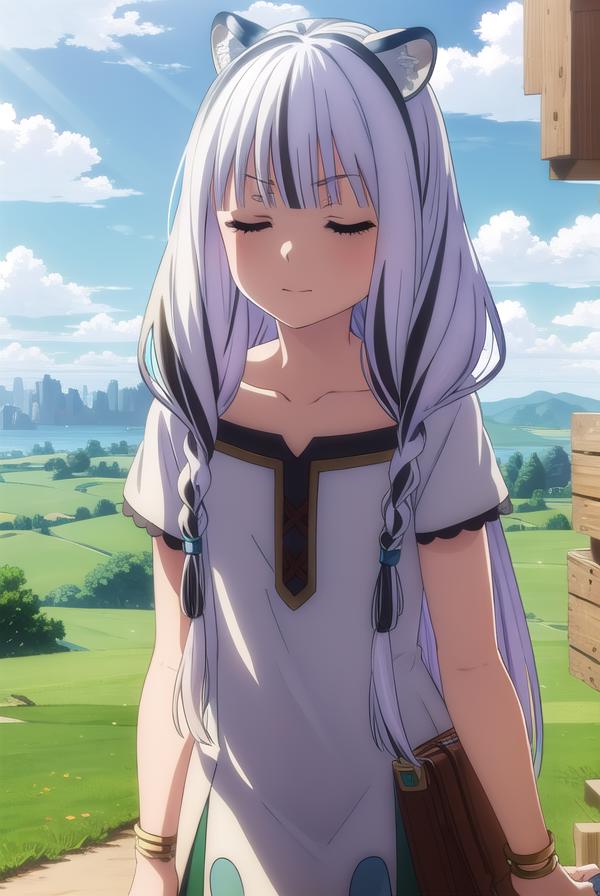 atla, long hair, bangs, animal ears, very long hair, (closed eyes:1.5), braid, white hair, multicolored hair, twin braids,