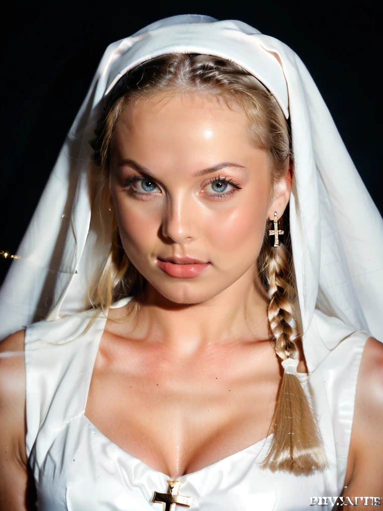 ,score_9, score_8_up, score_7_up, <lora:SilviaSaintQuiron_woman_v2:0.87> silviasaintquiron, sylviasaintquiron, 1girl, blonde hair, realistic, blue eyes, jewelry, lips, earrings, long hair, Breathtaking, 8k resolution, extremely detailed, establishing shot, artistic, hyperrealistic, dynamic lighting, masterpiece, light brazen, extremely detailed ,, kawai girl , cute face , nun, nun costume, black hair, bangs , large braided hair , golden cross, cleavage, bend forward , (slim fit), pose , dark background , closeup ,, Socializing with friends,