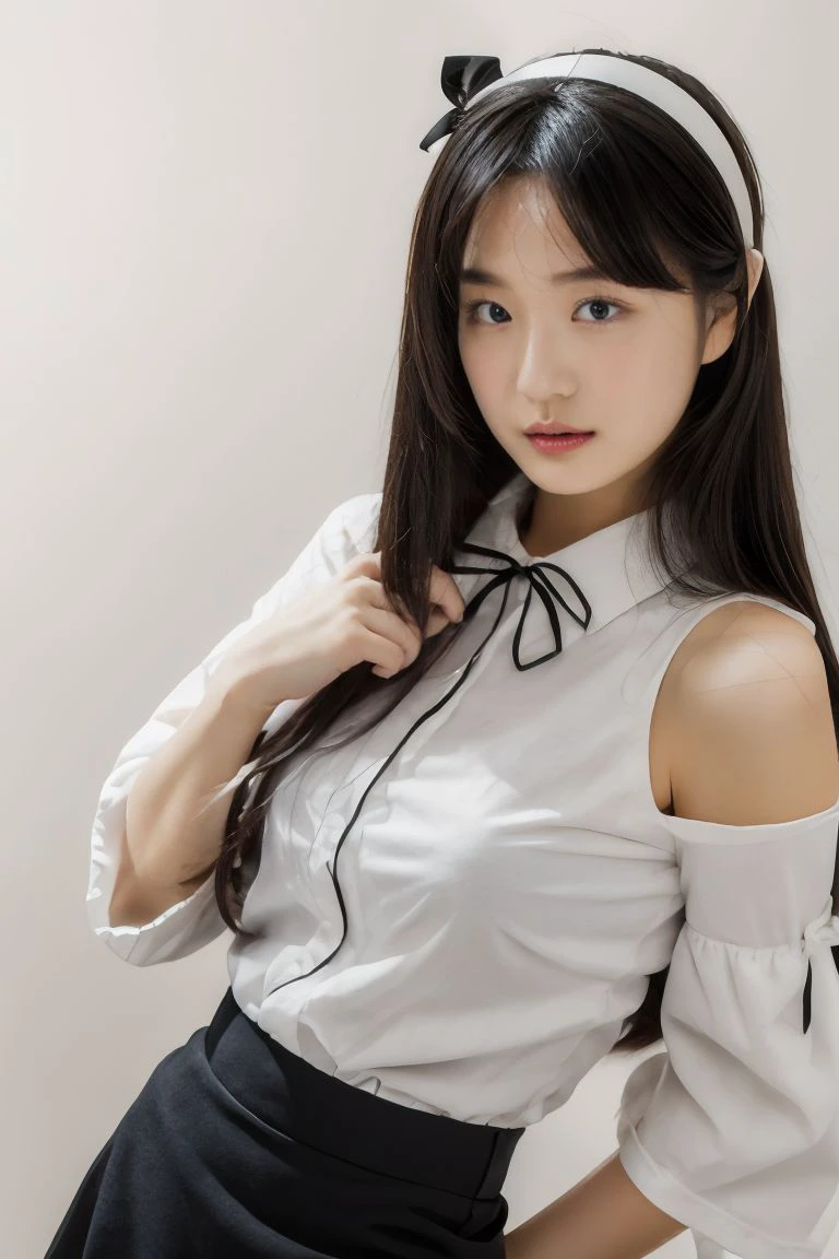 Recommend prompt: 1girl, solo, medium breasts, looking at viewer, realistic, photorealistic, black hair, black eyes,