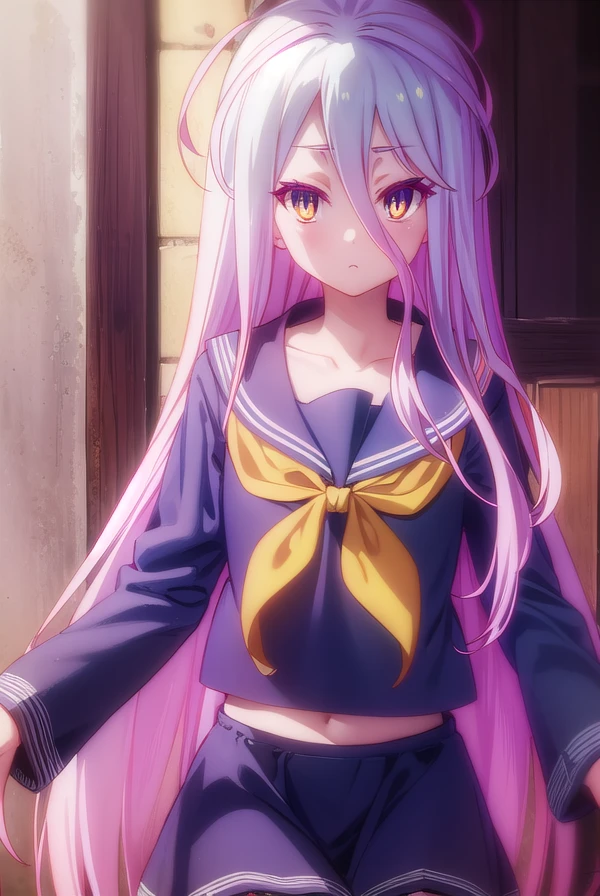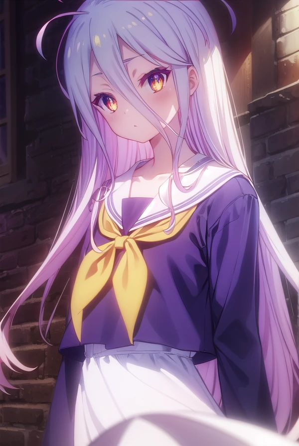 shiro, long hair, hair between eyes, very long hair, white hair, messy hair, (yellow eyes:1.3),