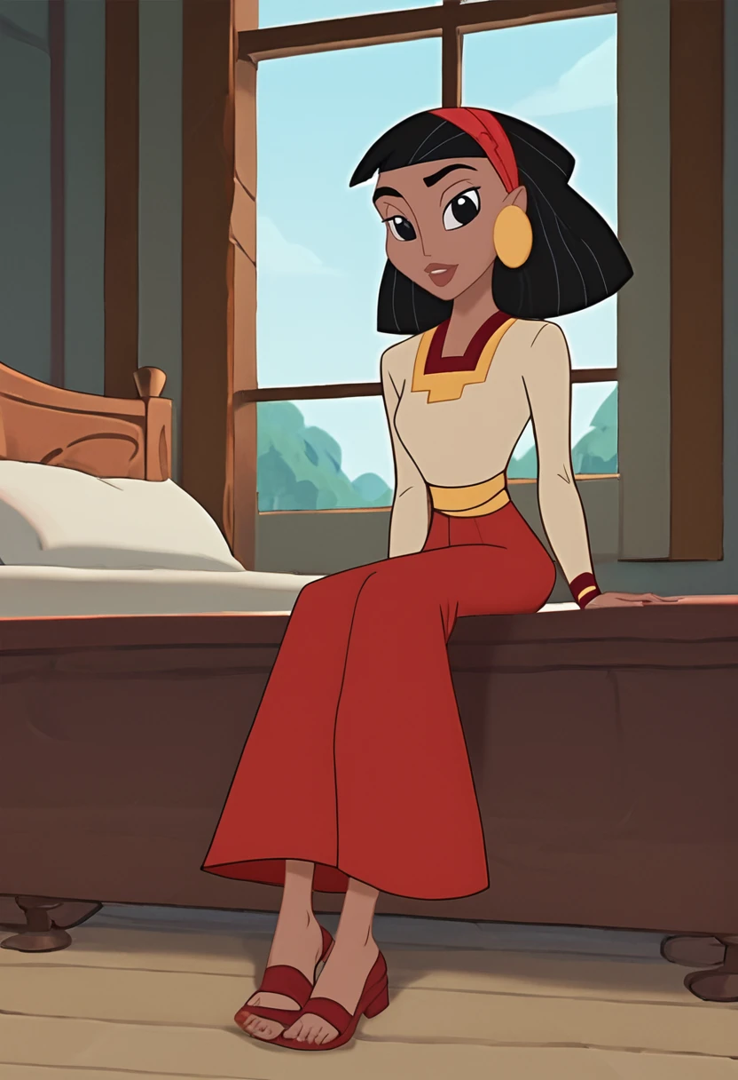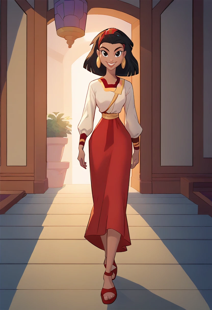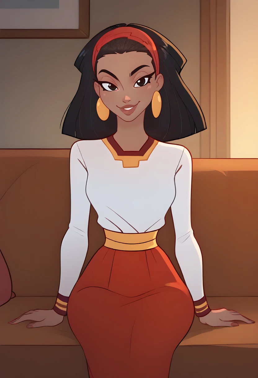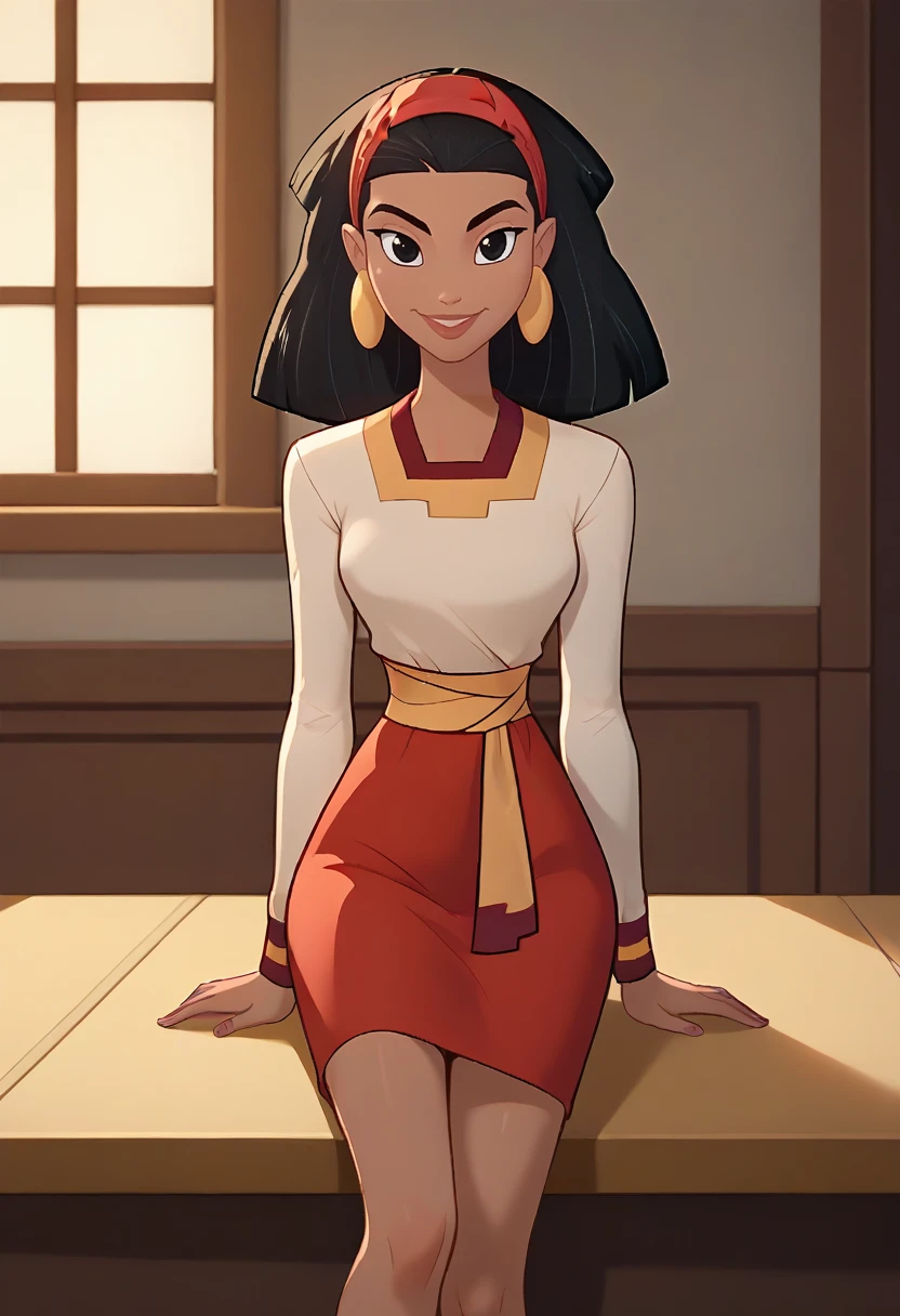Trigger word: malina Principal tags: dark skin, black hair, earring, hairband,white shirt, red skirt,smile,long sleeves