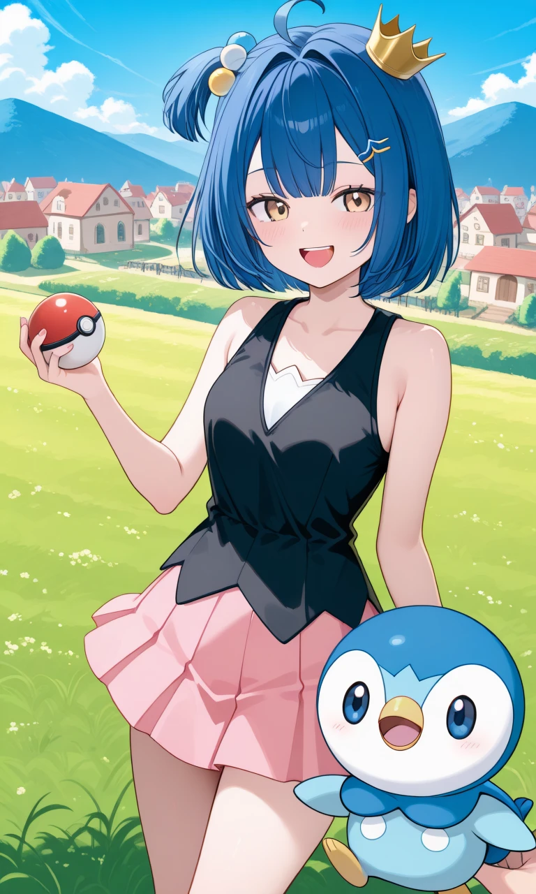 urumi kanon, blue hair, short hair, hairclip, hair bobbles, one side up, mini crownDefault outfit(closed jacket) :