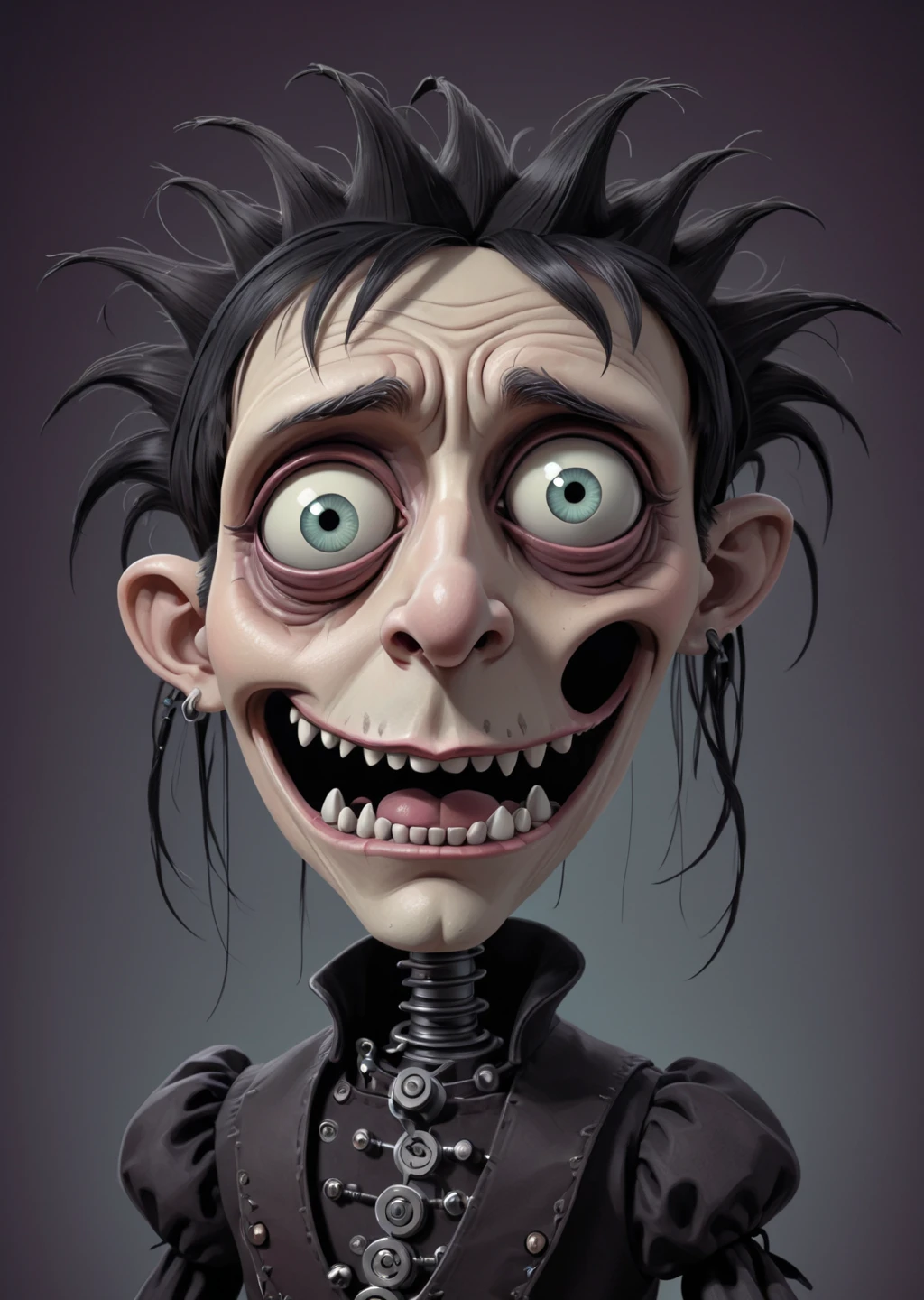 It creates characters with oversized eyes, stitched smiles, puppet‑like anatomy, and a surreal fairytale mood — eerie, but never terrifying.