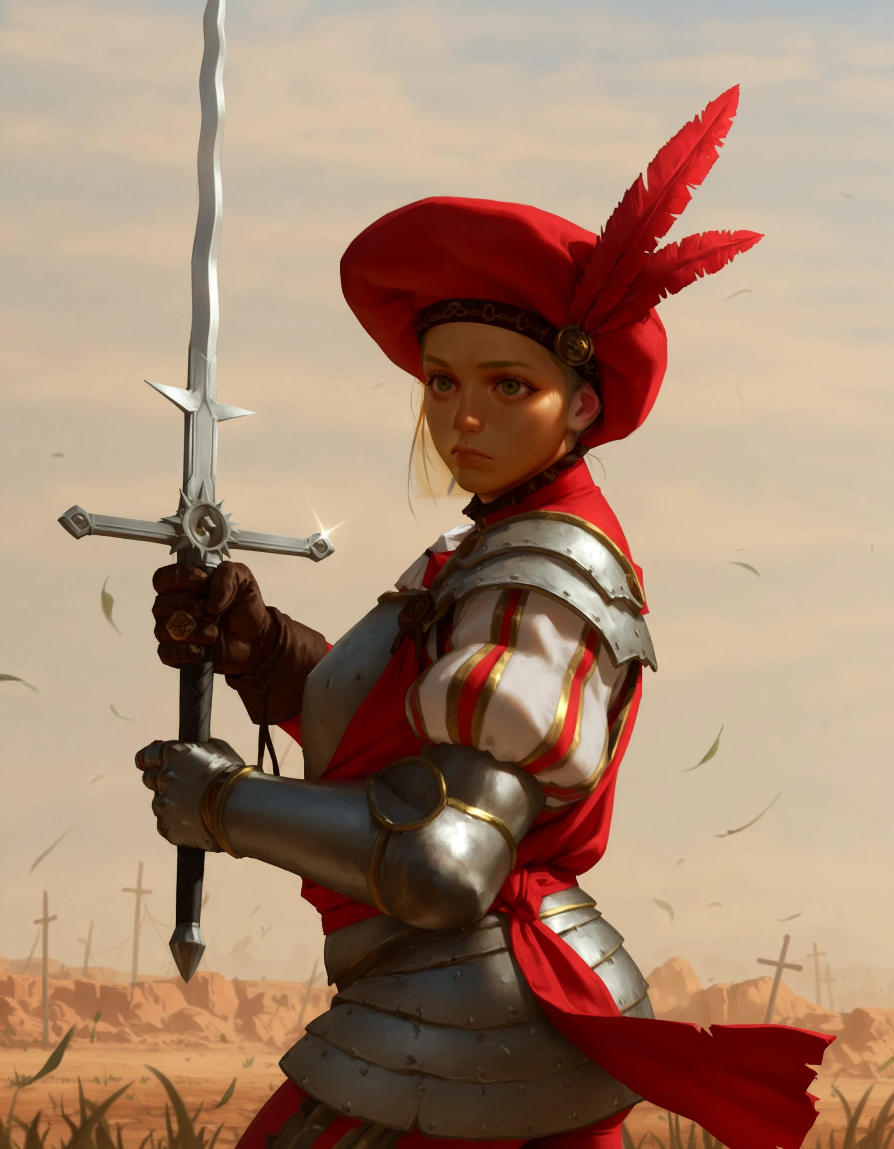 EmpireGreatsword, hat, hat feather, armor, two-handed, zweihander, flamberge, huge weapon,
