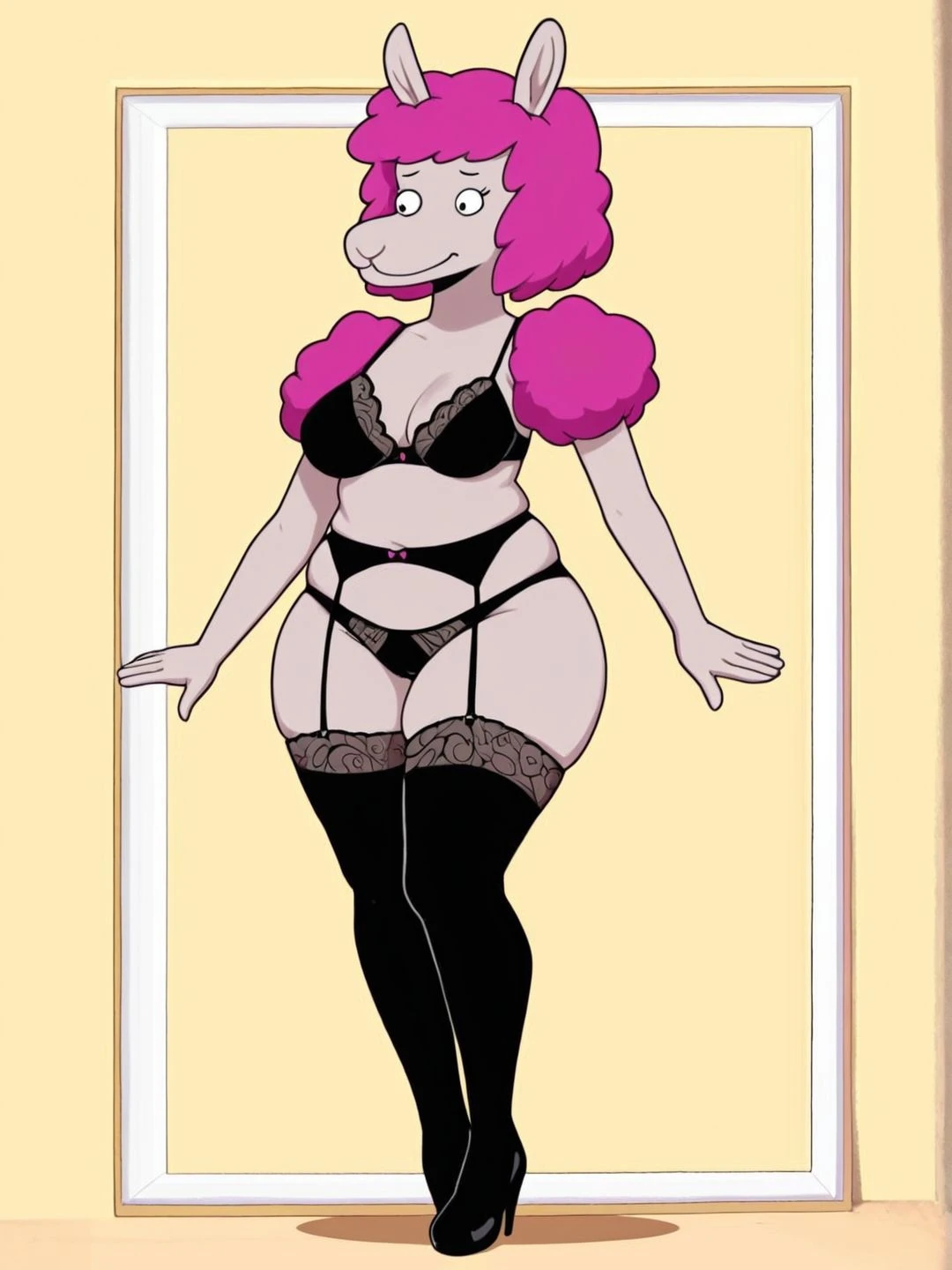 Berverly Bottom from (Bottom's Butte) a Alpaca who was a Teacher (smart) but her hair bun shrinked her brain, so she acts now like a teenager (oh boy, she's really lacks in smarts now).