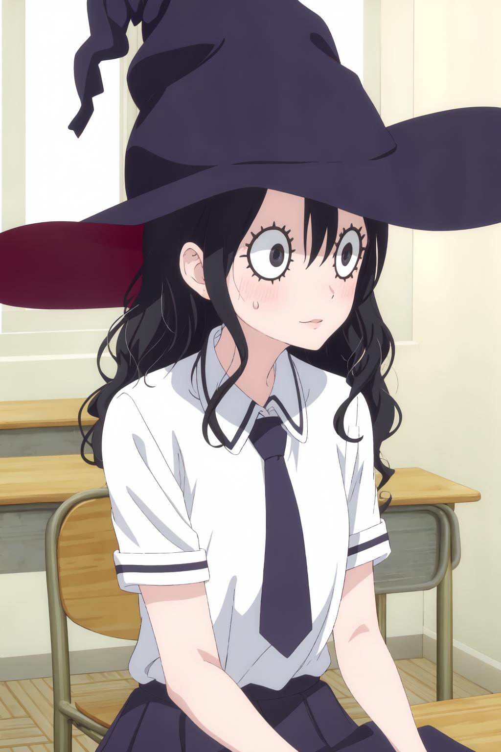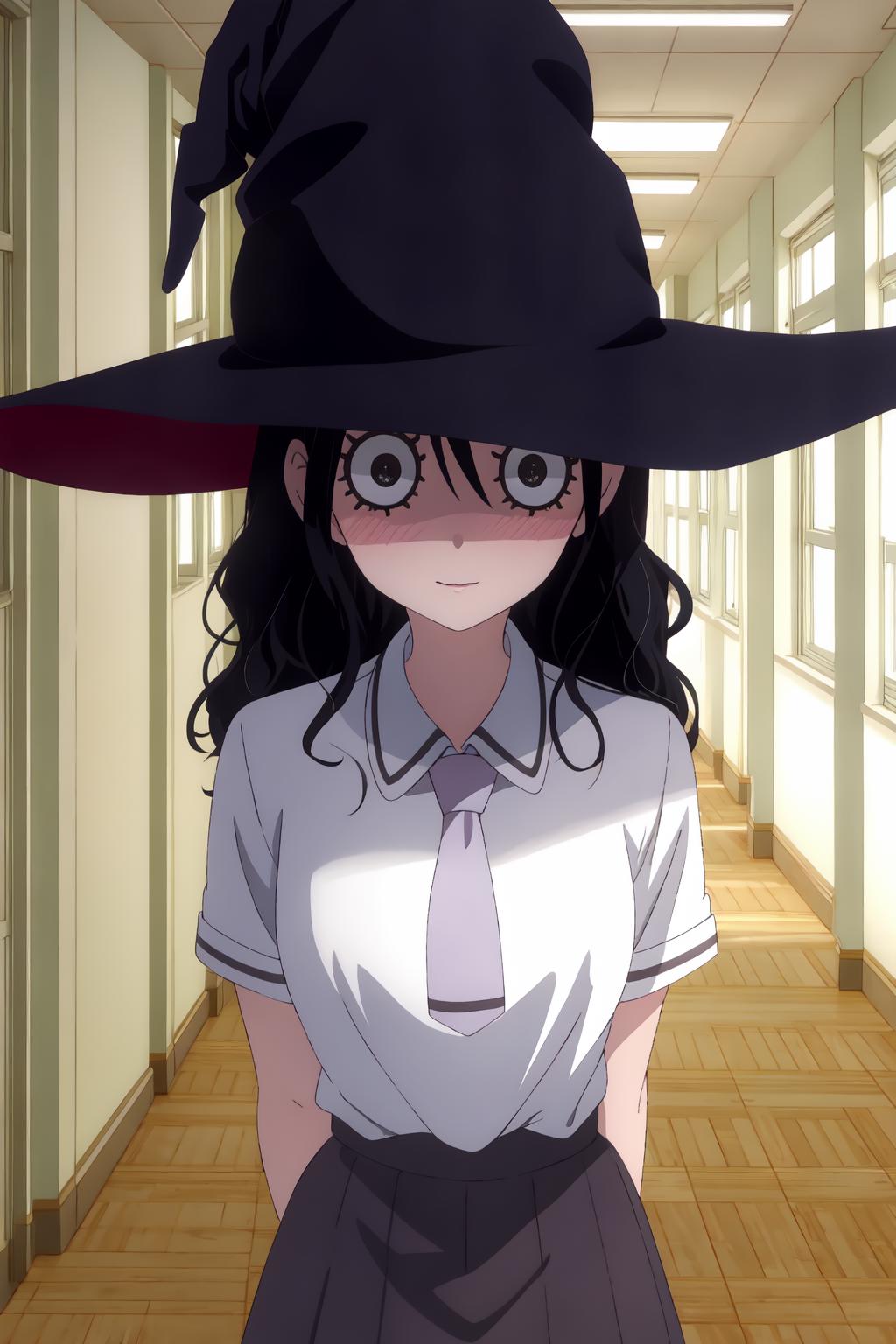 Outfit is School uniform, witch hat