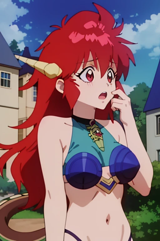 3) bikini armor, detached sleeves, vambraces, knee boots, dragon charm creates the outfit Mink is wearing in the anime. I spent a lot of time training each keyword separately, so you should be able to mix and match them, but some other concepts might bleed into the image from time to time.
