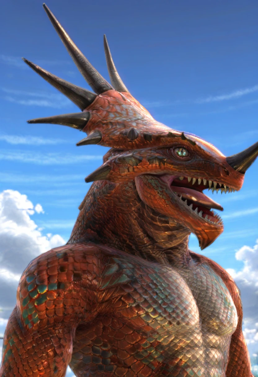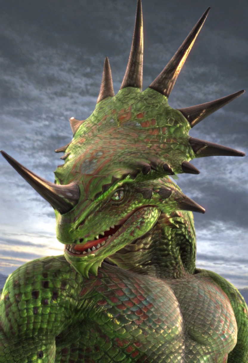 lizardman (soulcalibur), 1boy, lizardman, horns, single horn, slit pupils, sharp teeth, tail