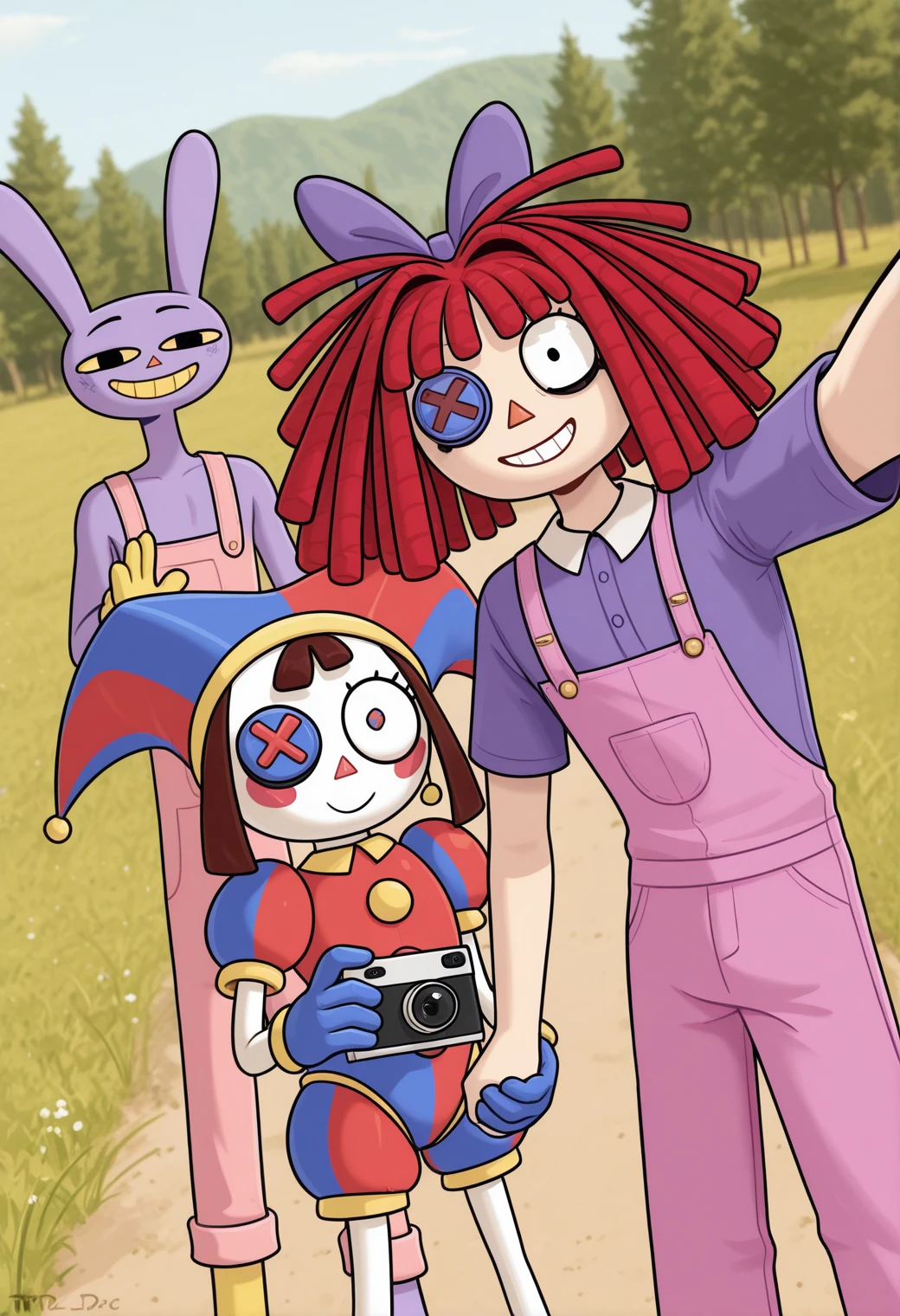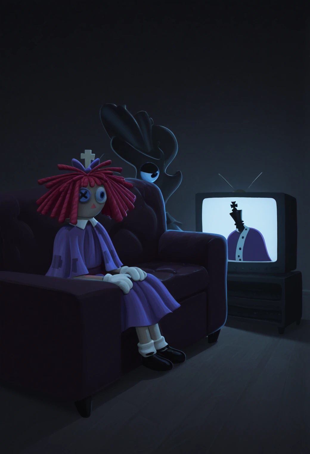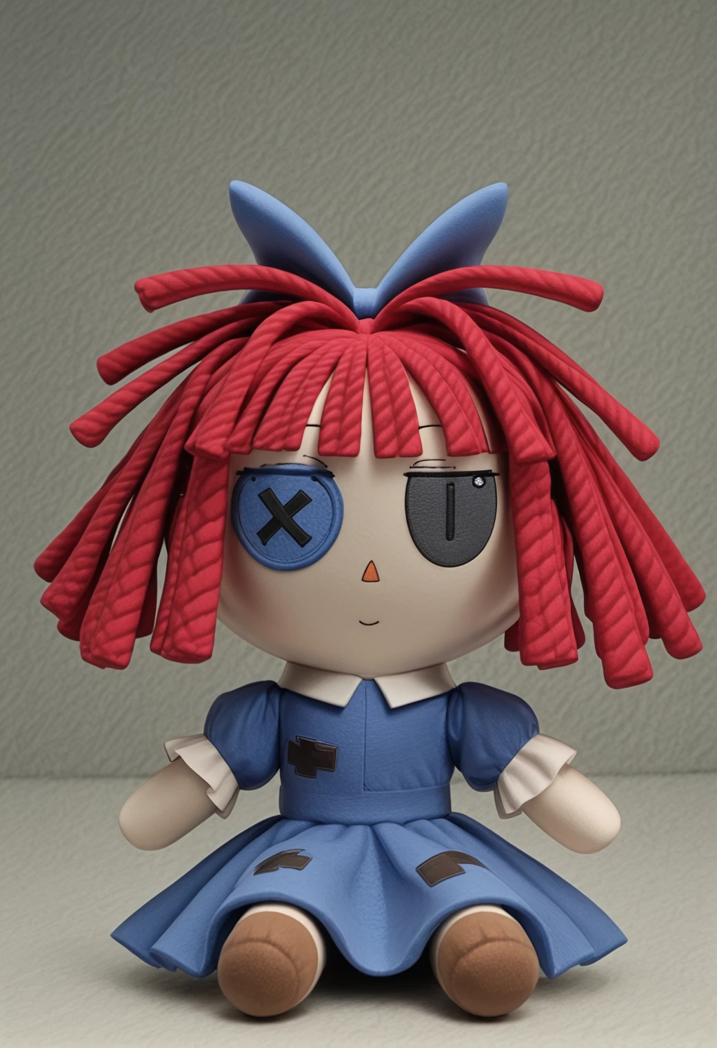 tadc_ragatha, red hair, black eyes, blue dress, short sleeves, white collared under-dress
