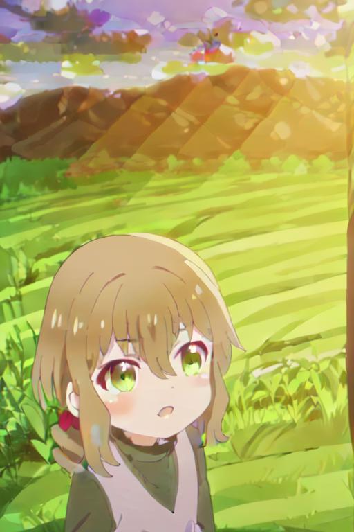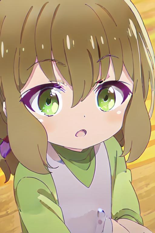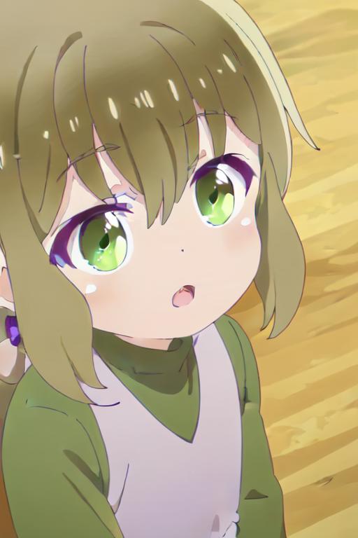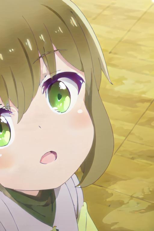 brown hair, anime coloring, 1girl, green eyes, hair between eyes,