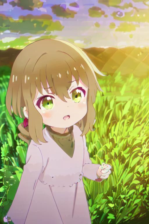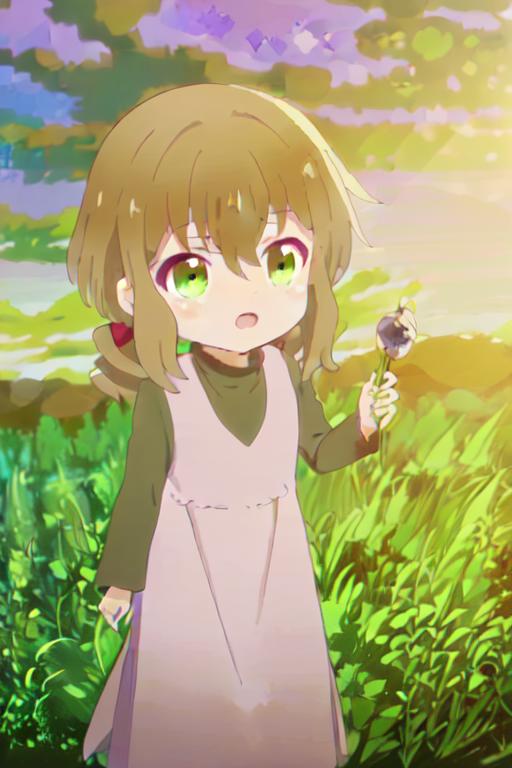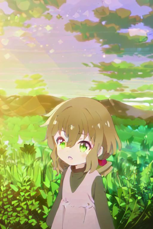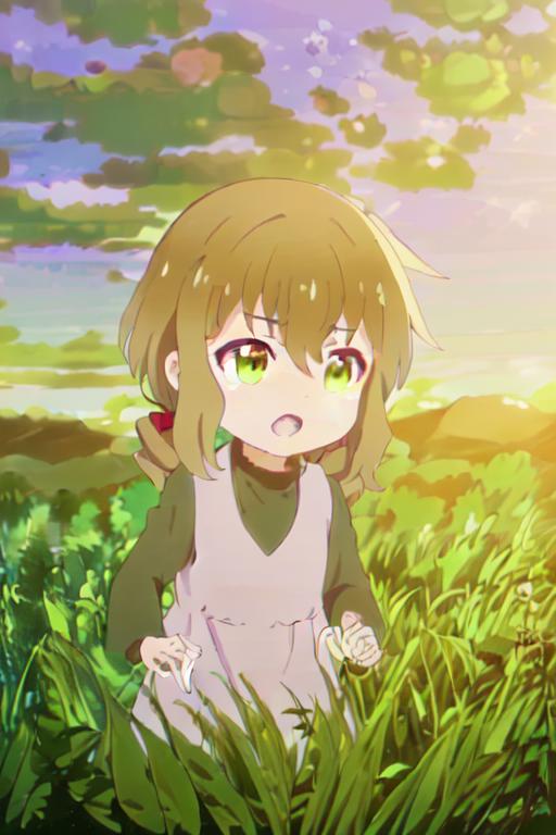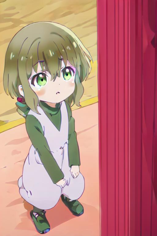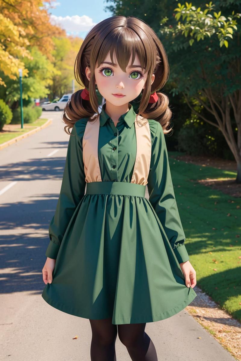 optional trigger words: green shirt, long sleeves, blush, dress, twintails, tights