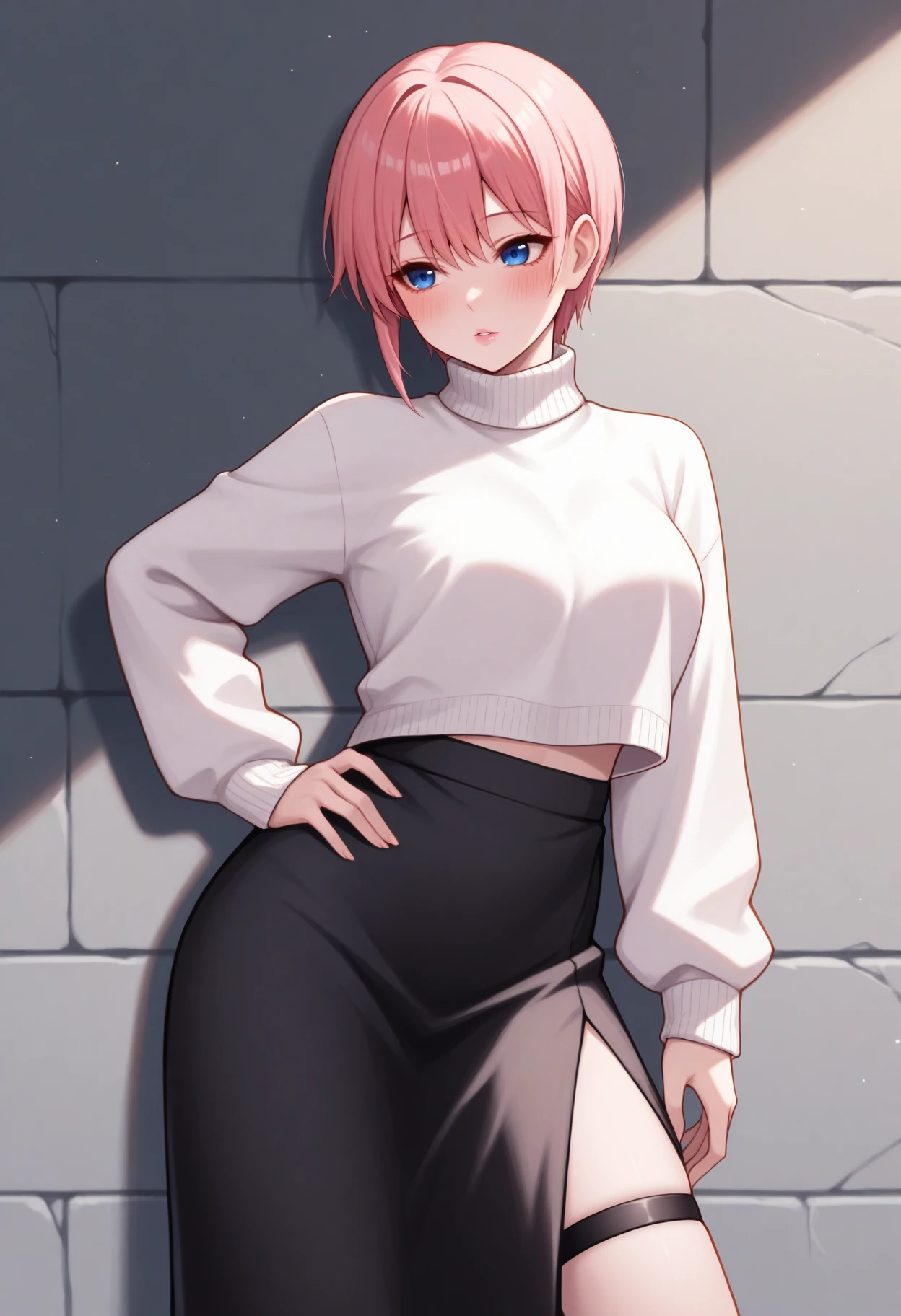 NknIchik, blue eyes, pink hair, short hairDefault Outfit: