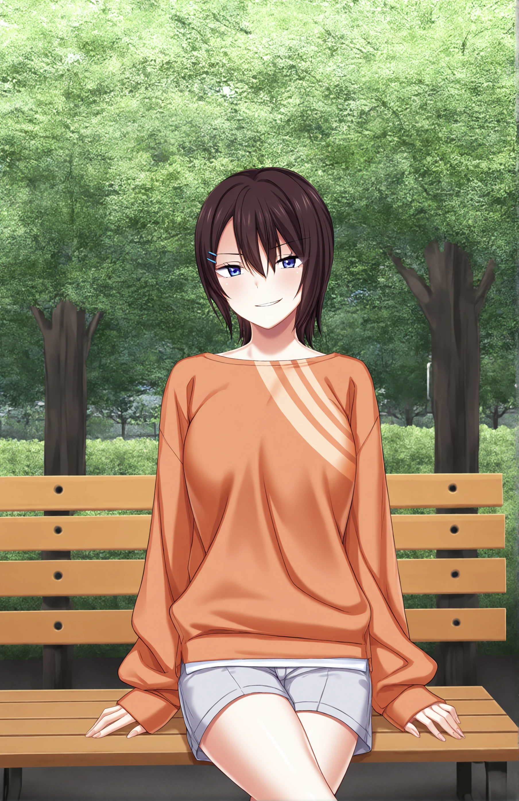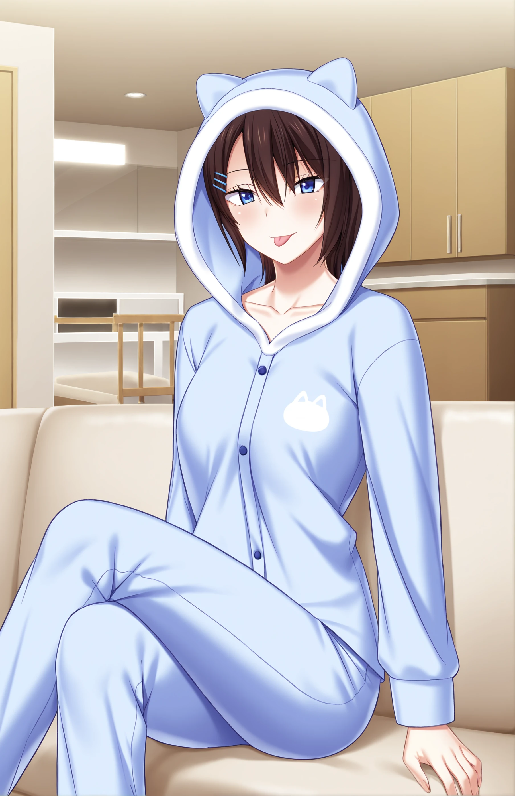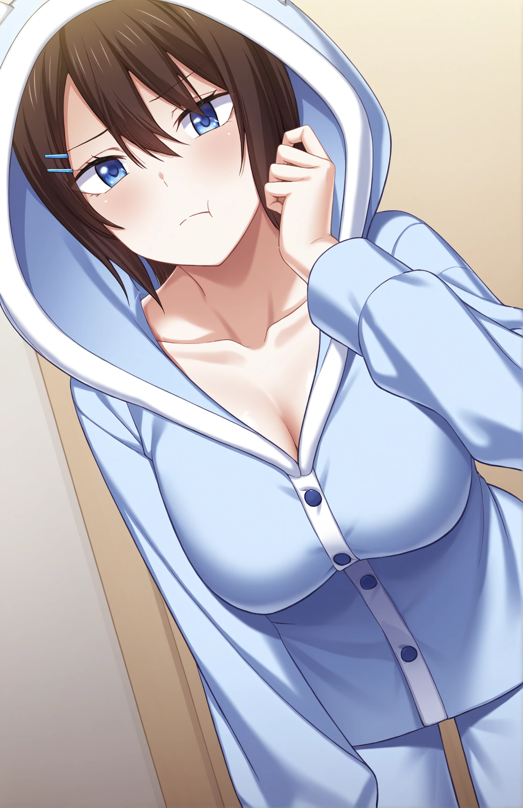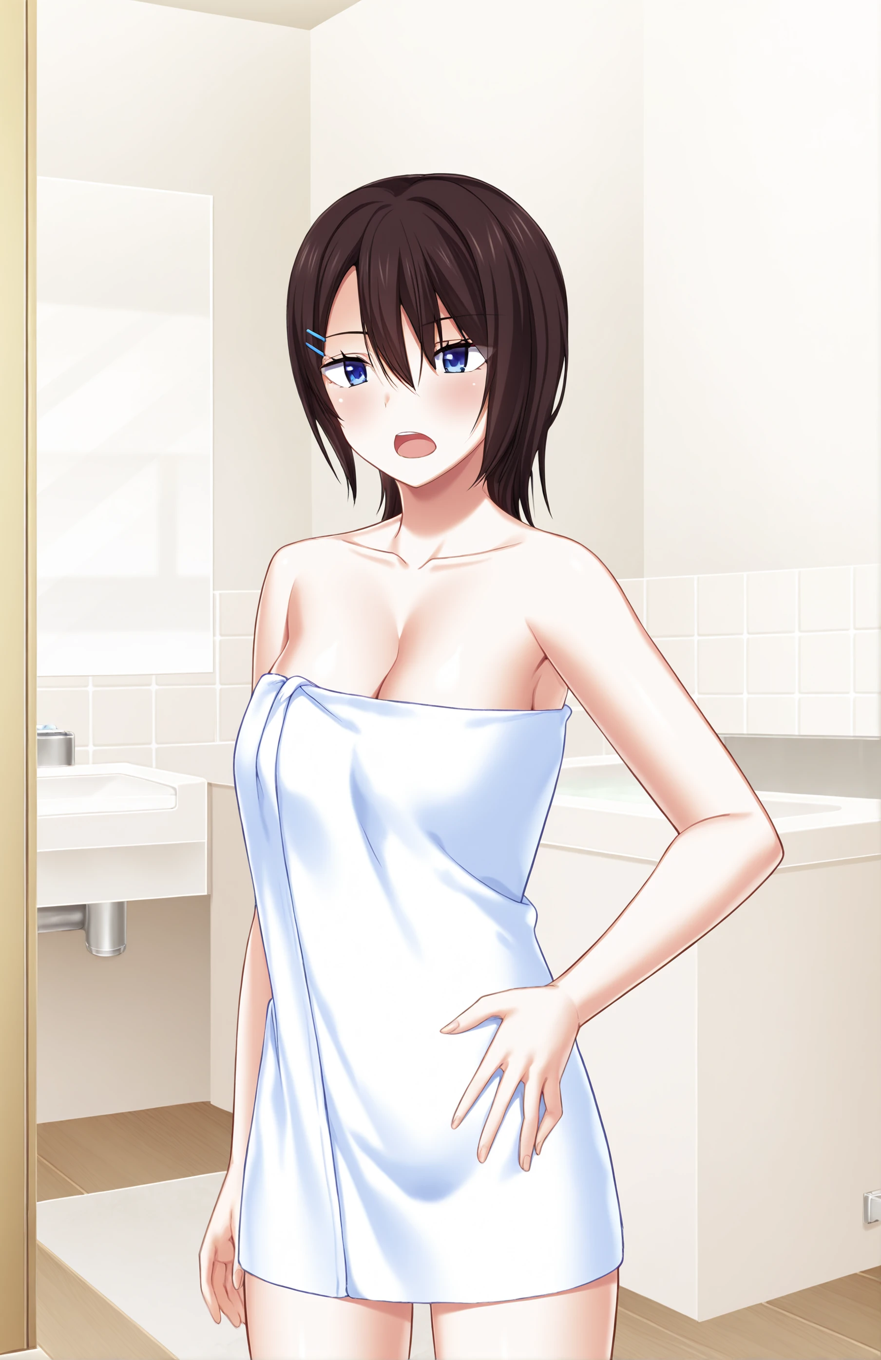 SaitouHanako, breasts, short hair, bangs, blue eyes, brown hair, black hair, hair ornament, hair between eyes, hairclip,