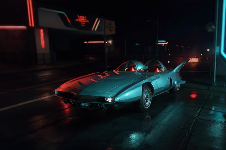 The Firebird III debuted at Motorama in 1959. The concept car featured a fiberglass body with seven short wings and tail fins. It is a two-seater powered by a 225 hp (168 kW) Whirlfire GT-305 gas turbine engine, with a two-cylinder 10 hp (7.5 kW) gasoline engine to run all the accessories. Its exterior design features a double-bubble canopy and included cruise control, anti-lock brakes, and air conditioning. It also featured air drag brakes similar to those found on aircraft that emerged from flat panels in the bodywork of the car to slow it from high speeds; an "ultra-sonic" key that signaled the doors to open; an automated guidance system to help avoid accidents; and a "no hold" steering system. The car's steering was controlled by the driver by a joystick positioned between the two seats.