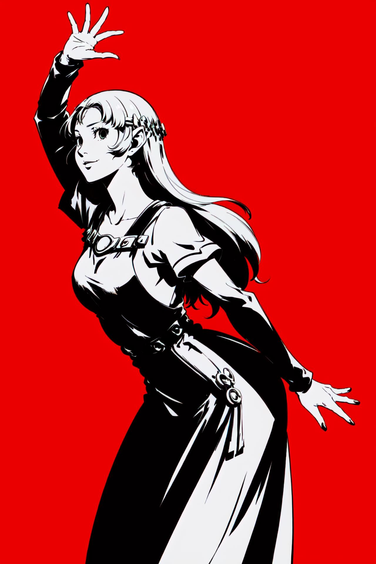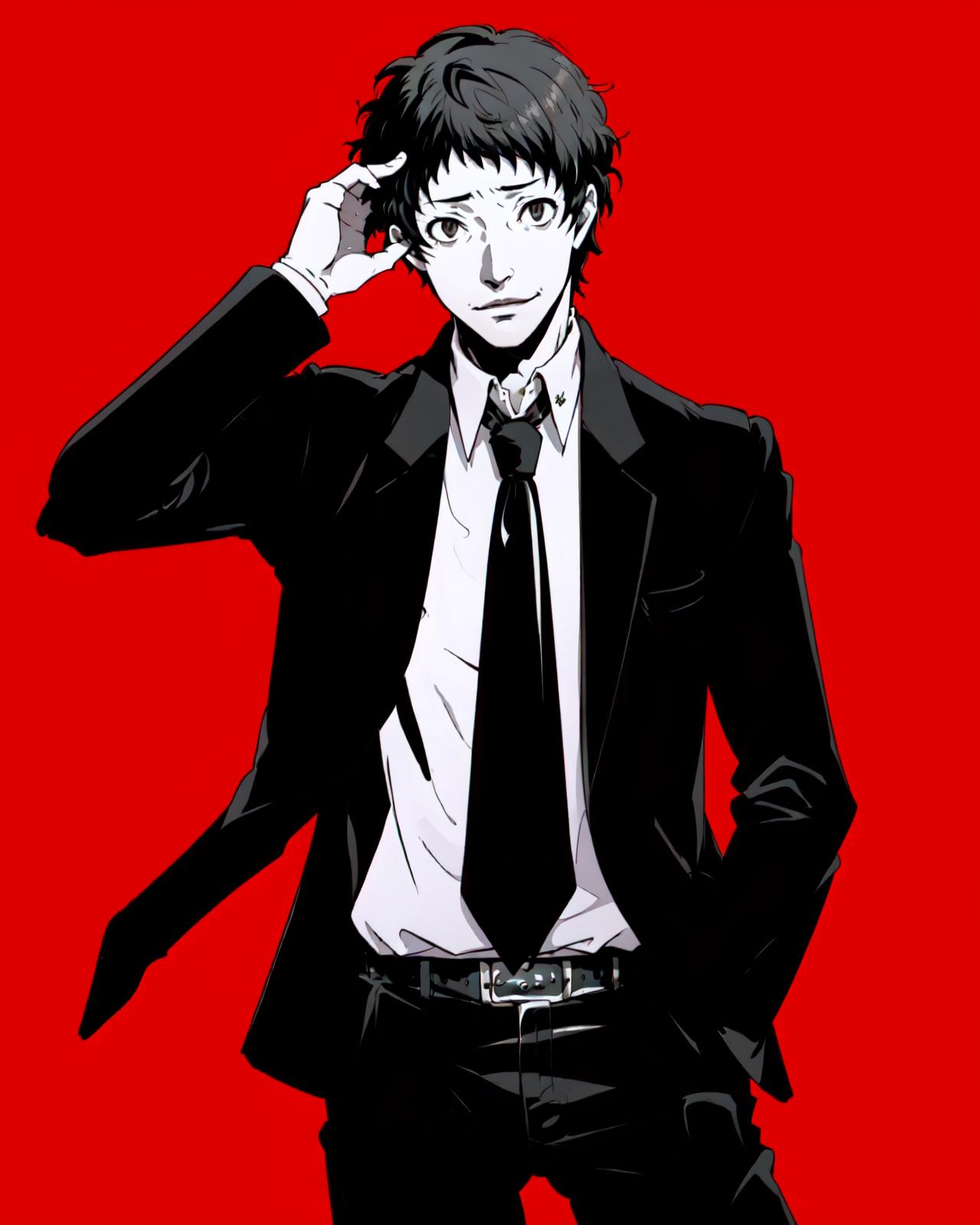 The style Lora does not require trigger words, but it is recommended to add phrases like "red background", "black background" or "simple background" when using it. A red background is relatively the easiest way to restore the Persona 5 style.
